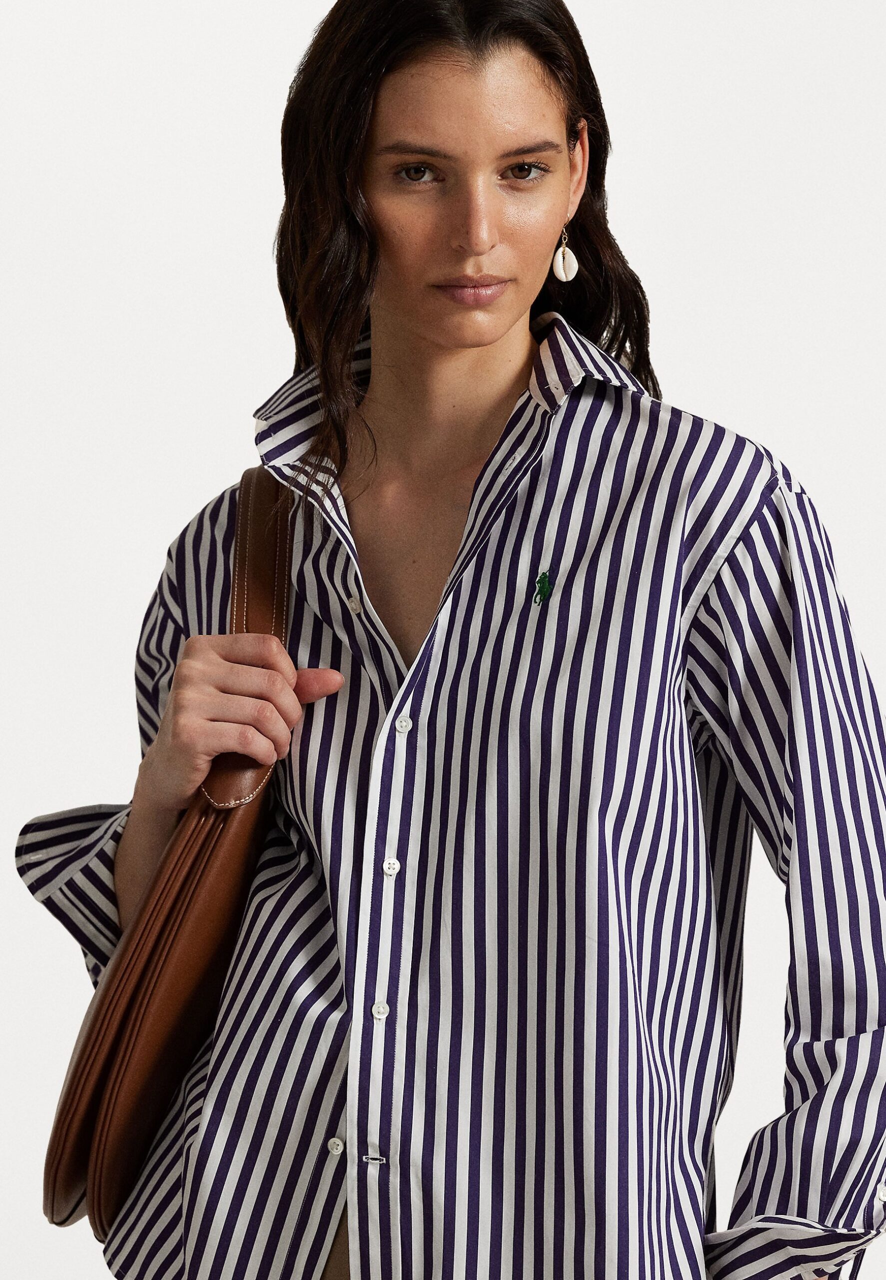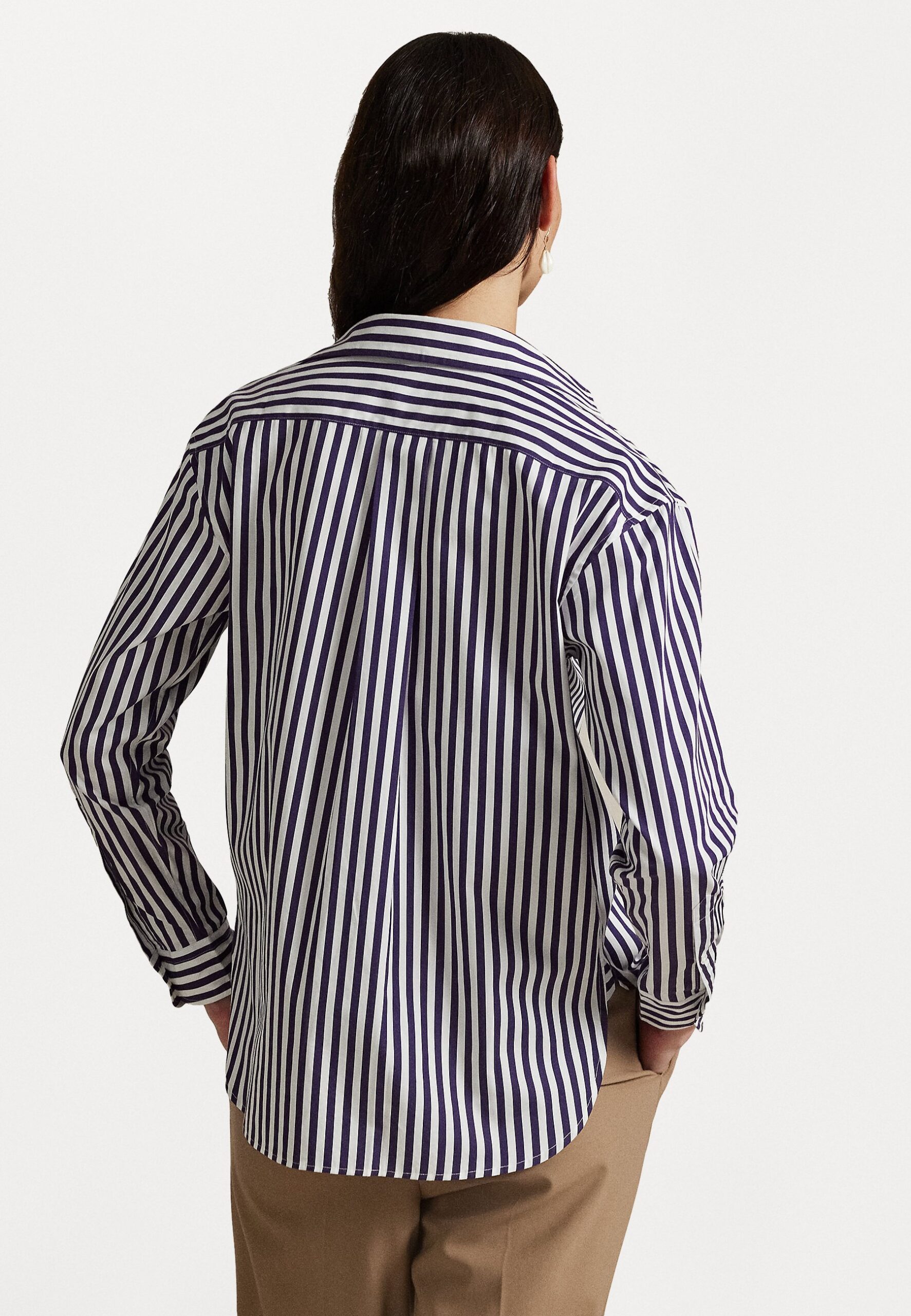 RELAXED FIT STRIPED COTTON SHIRT – Button-down blouse – bright purple/white