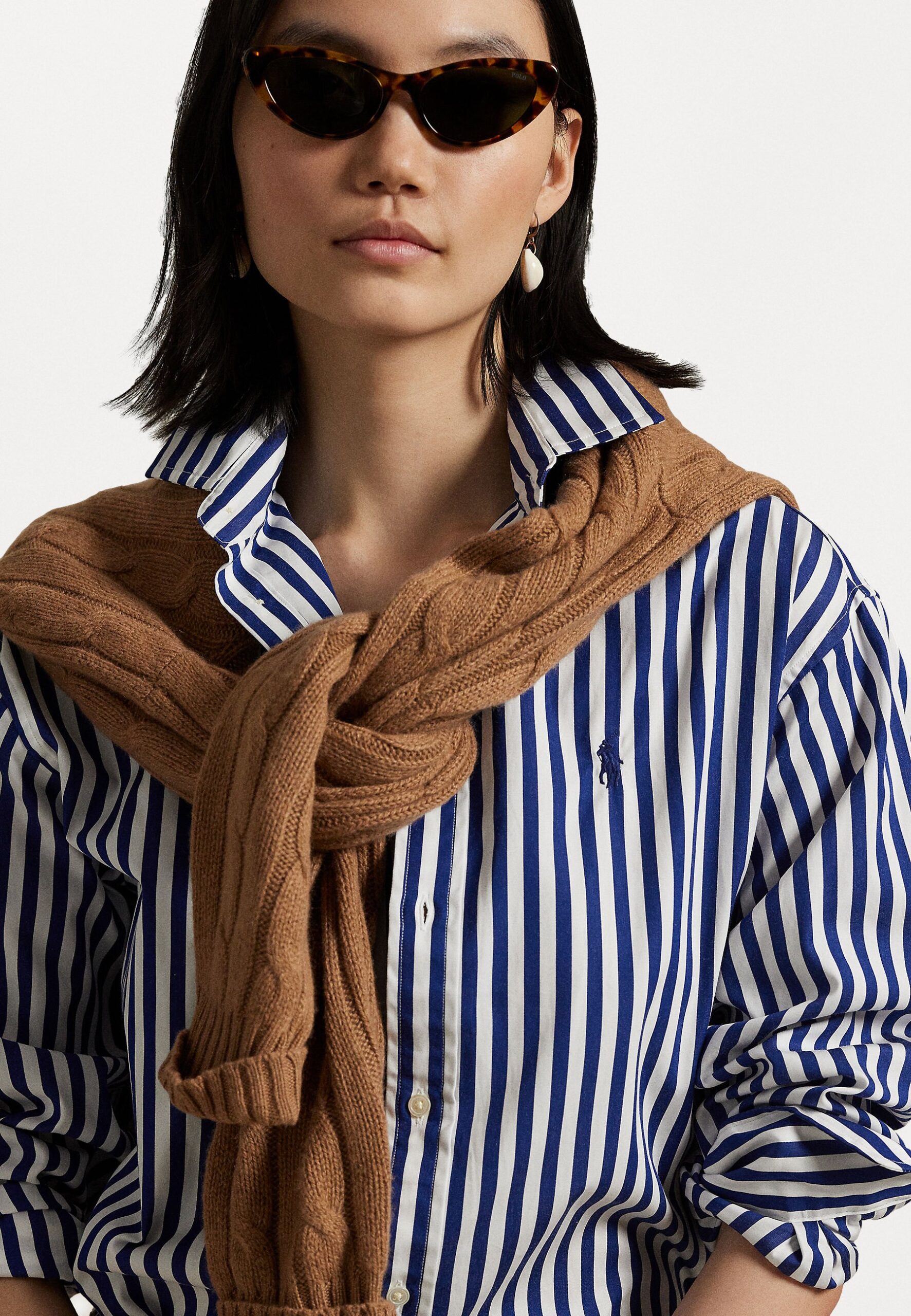 RELAXED FIT STRIPED COTTON SHIRT – Button-down blouse – fall royal/white