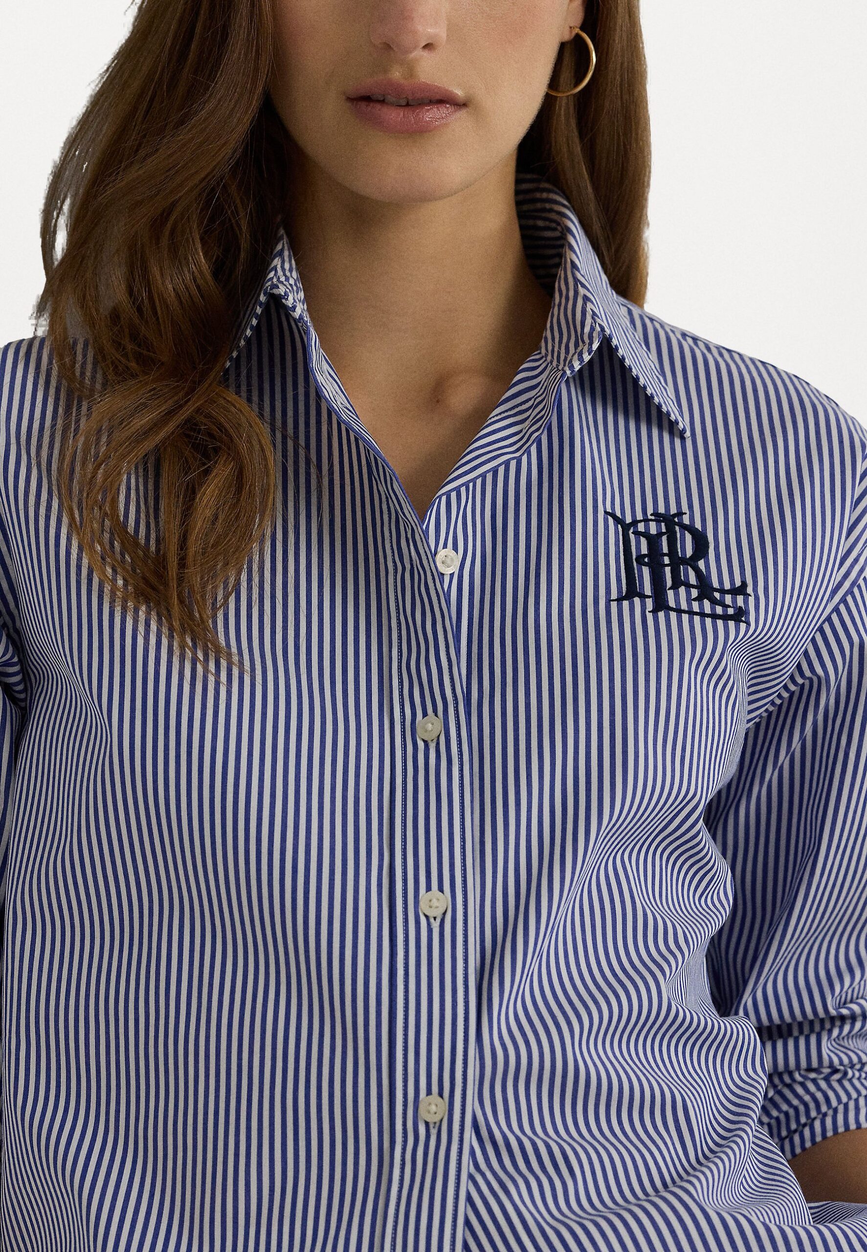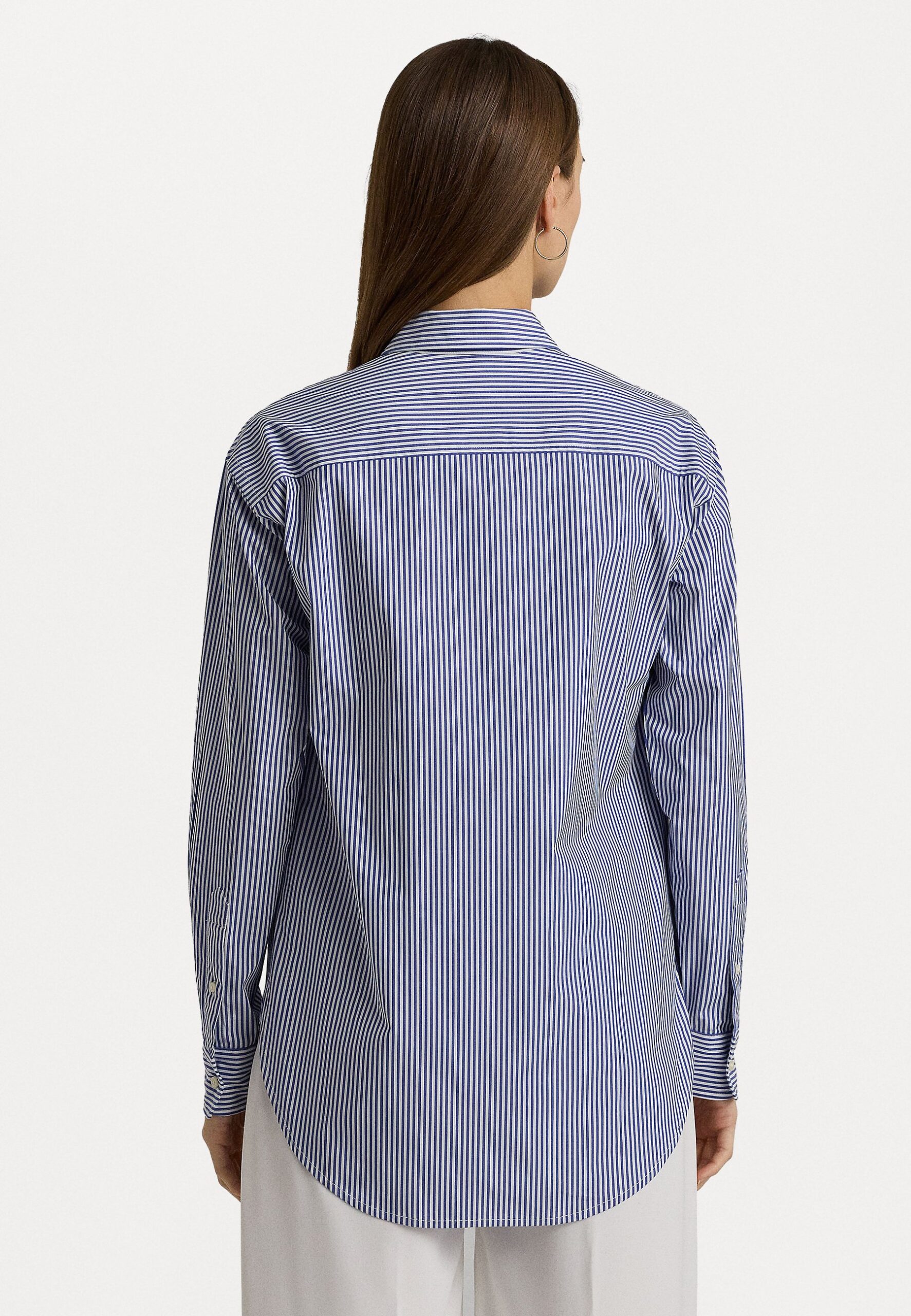 RELAXED FIT STRIPED STRETCH COTTON SHIRT – Button-down blouse – blue/white