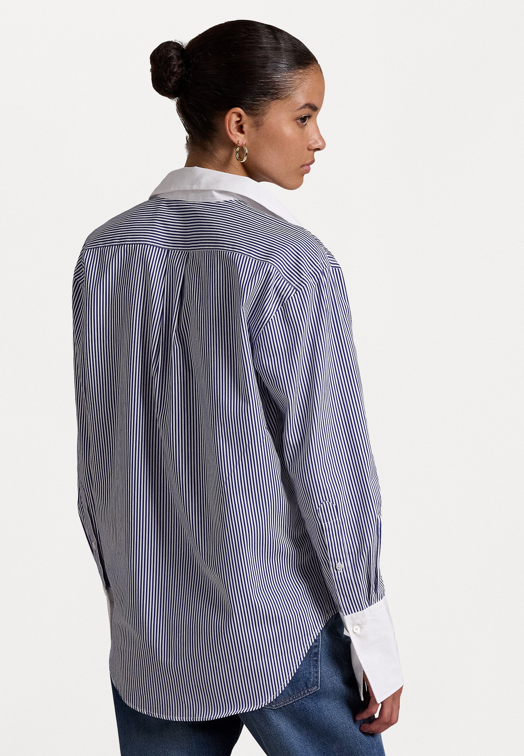 RELAXED FIT TWO TONE STRIPED SHIRT – Button-down blouse – white/fall royal