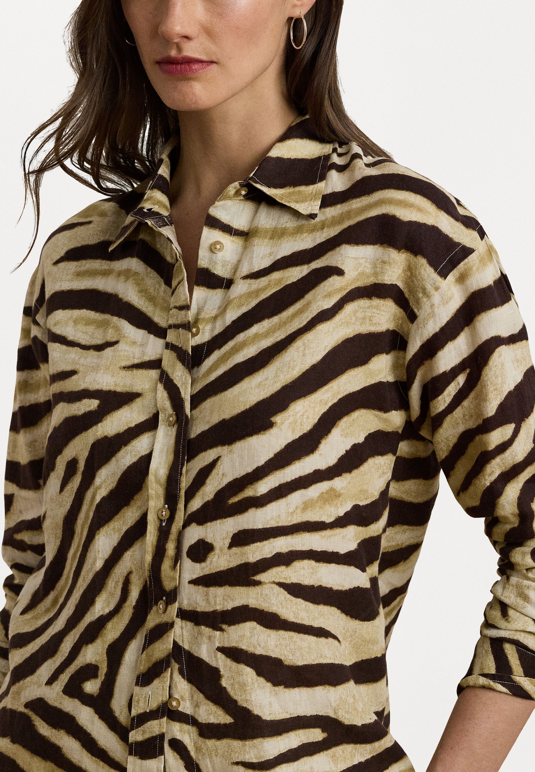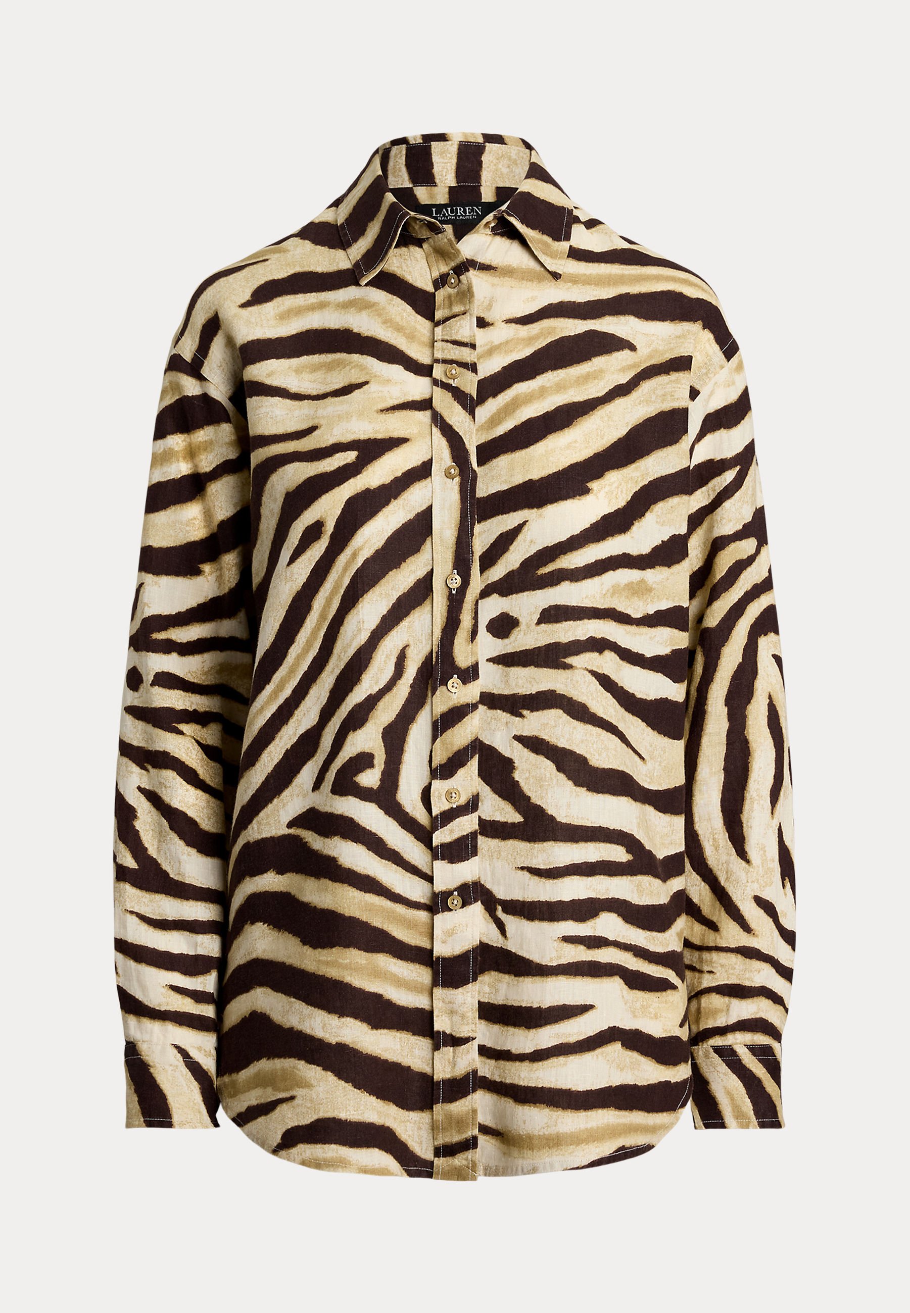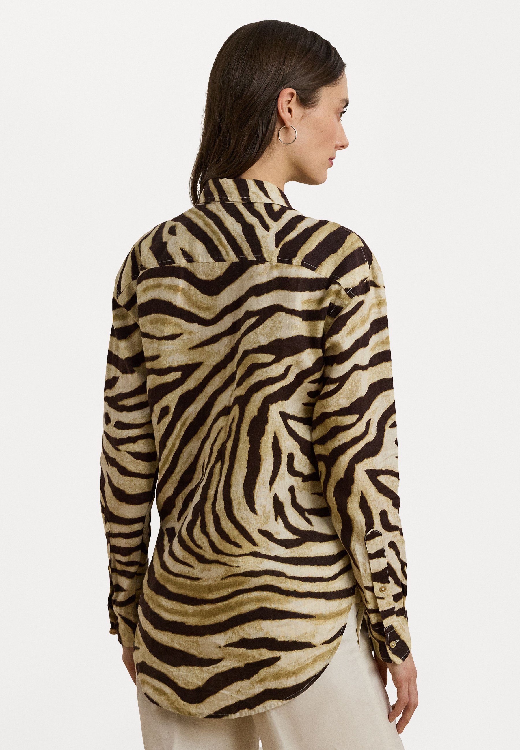 Relaxed Fit Zebra Print Linen Shirt – Button-down blouse – cream/brown