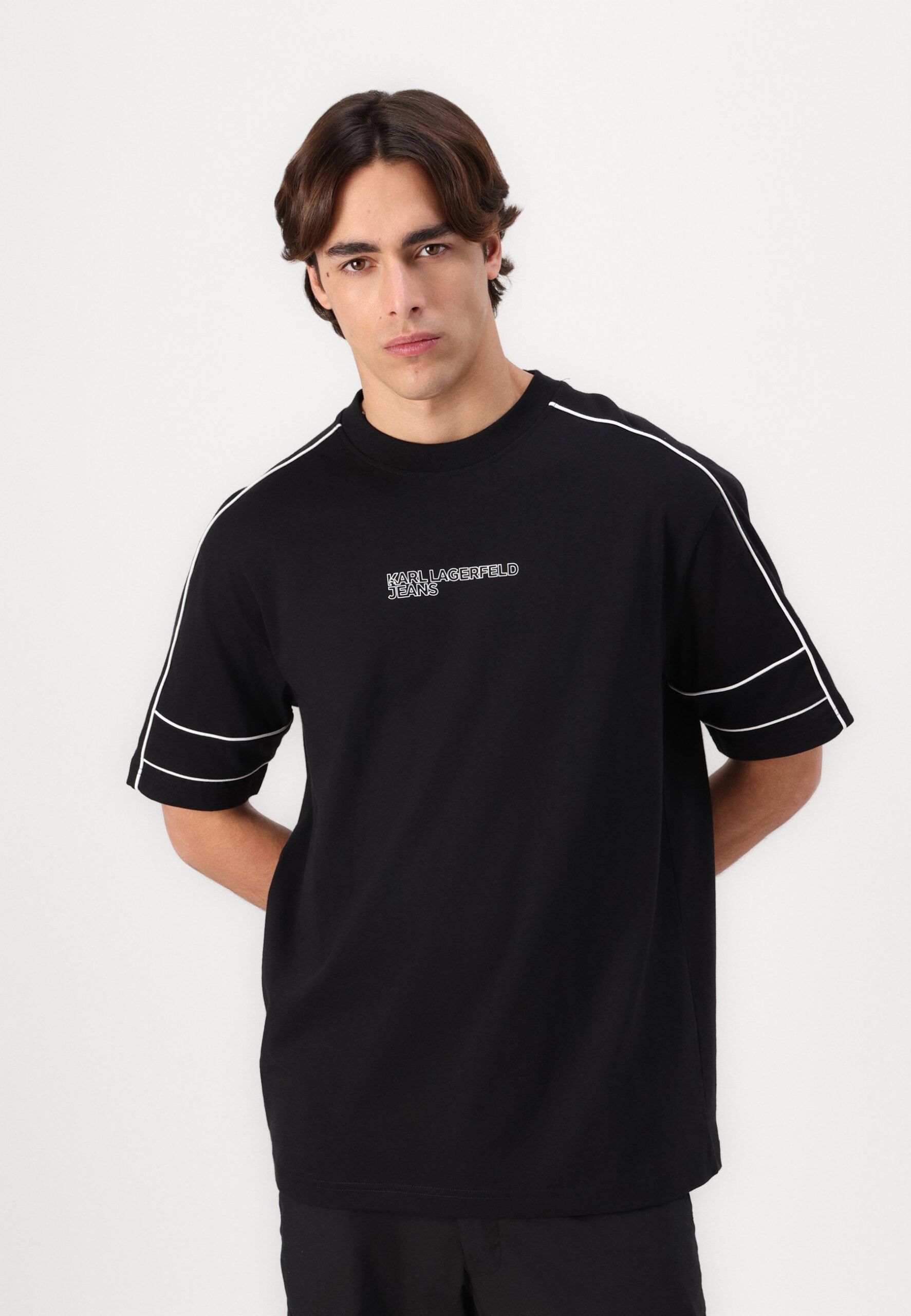 RELAXED PIPING TEE – Print T-shirt – black