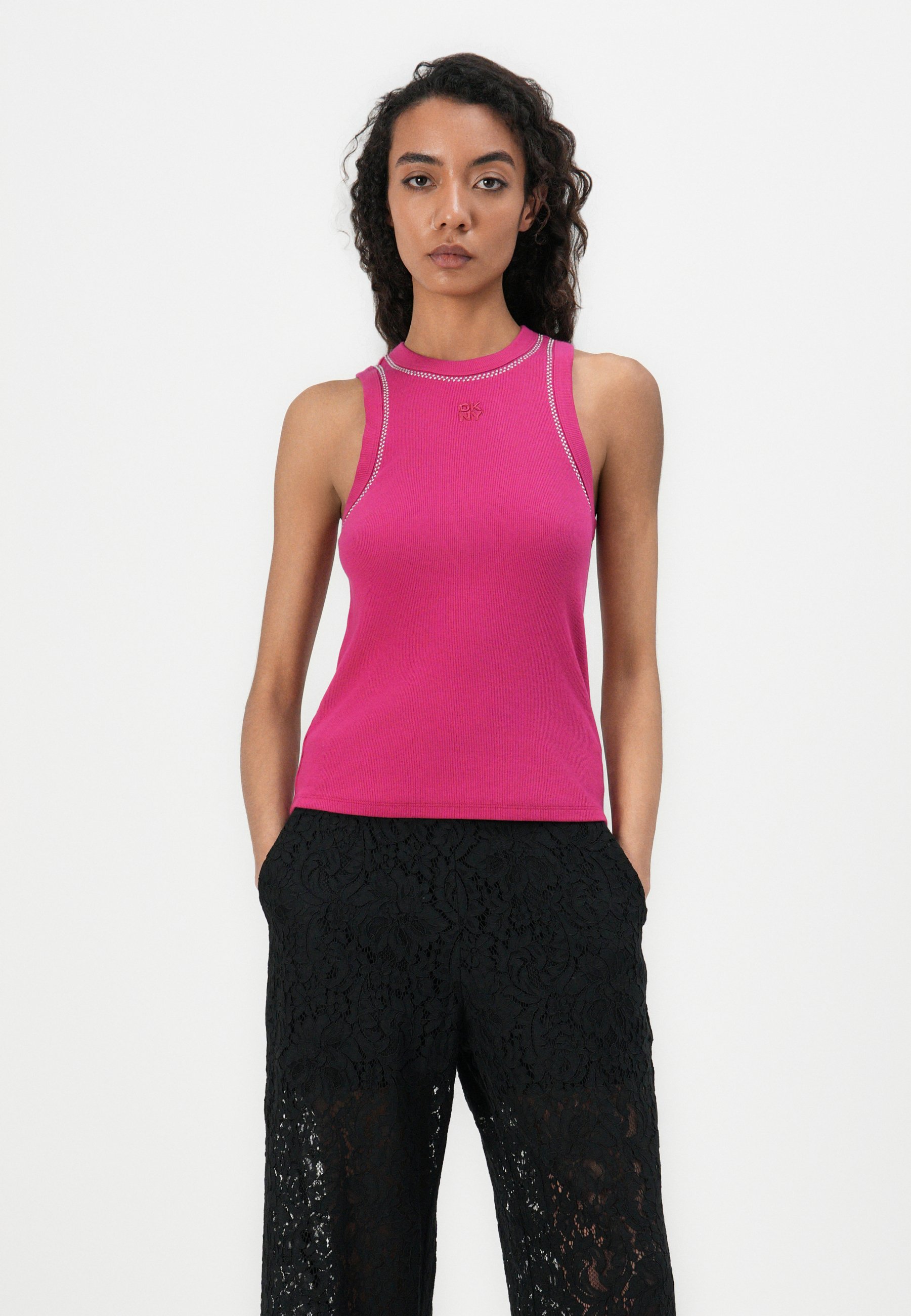 RHINESTONE AT NECK ARMHOLE TANK – Top – wild berry