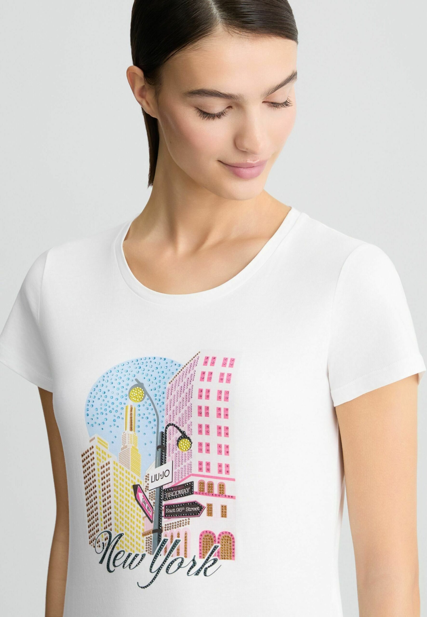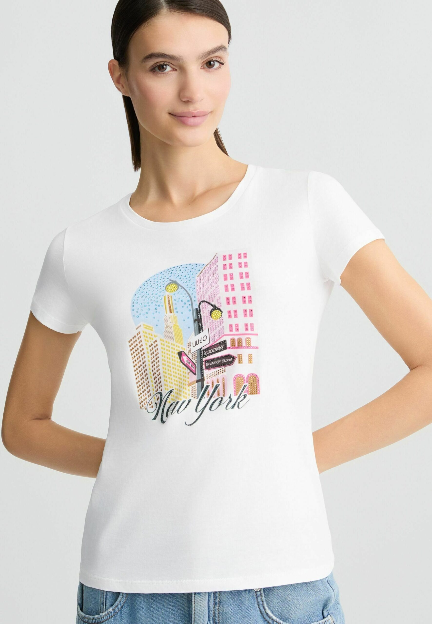 RHINESTONES – Print T-shirt – white