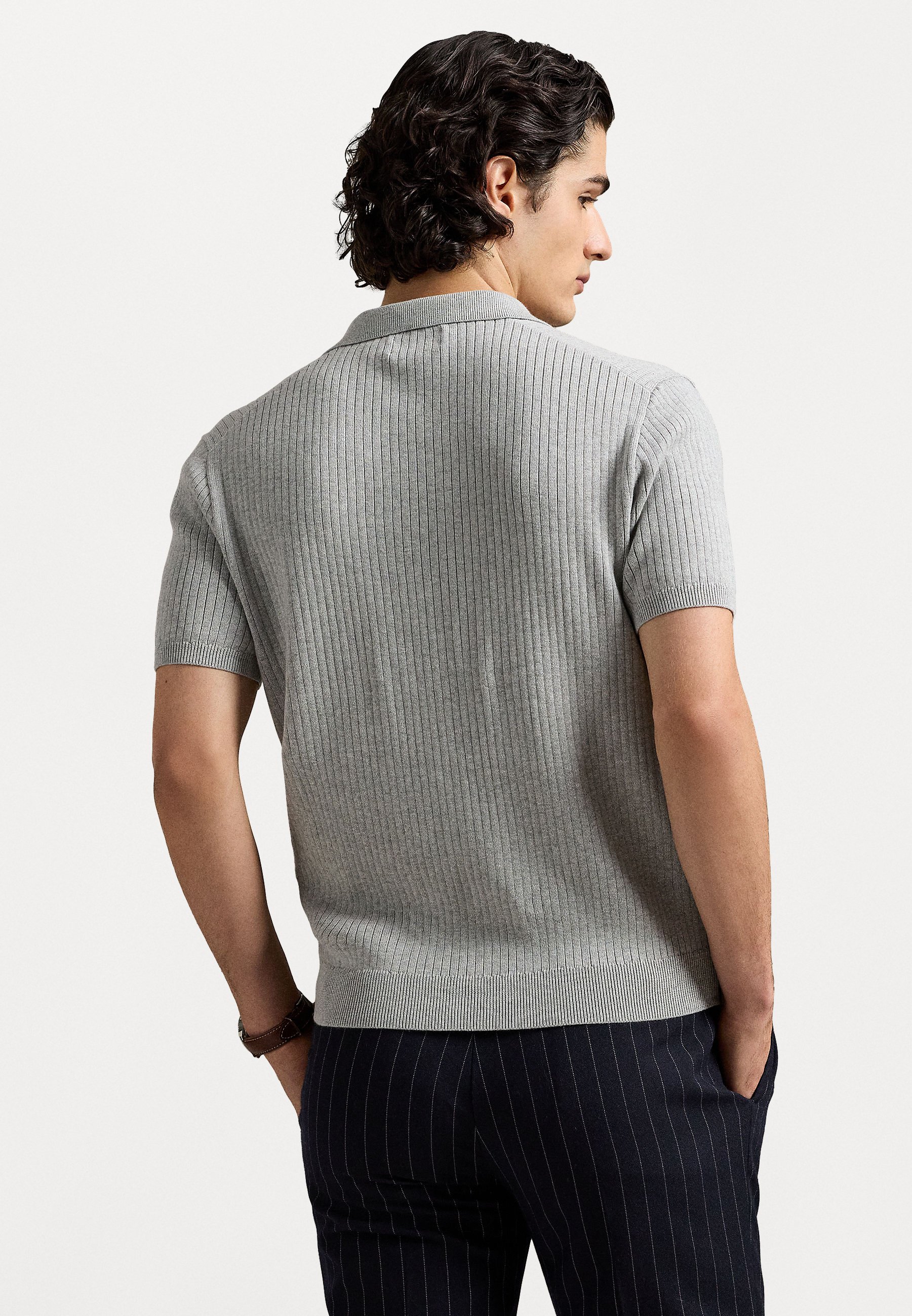 RIB-KNIT COTTON SHORT-SLEEVE SWEATER – Polo shirt – andover heather