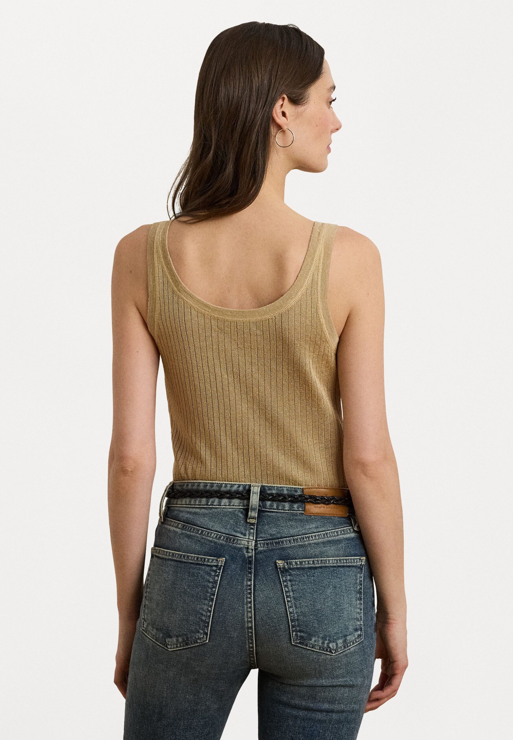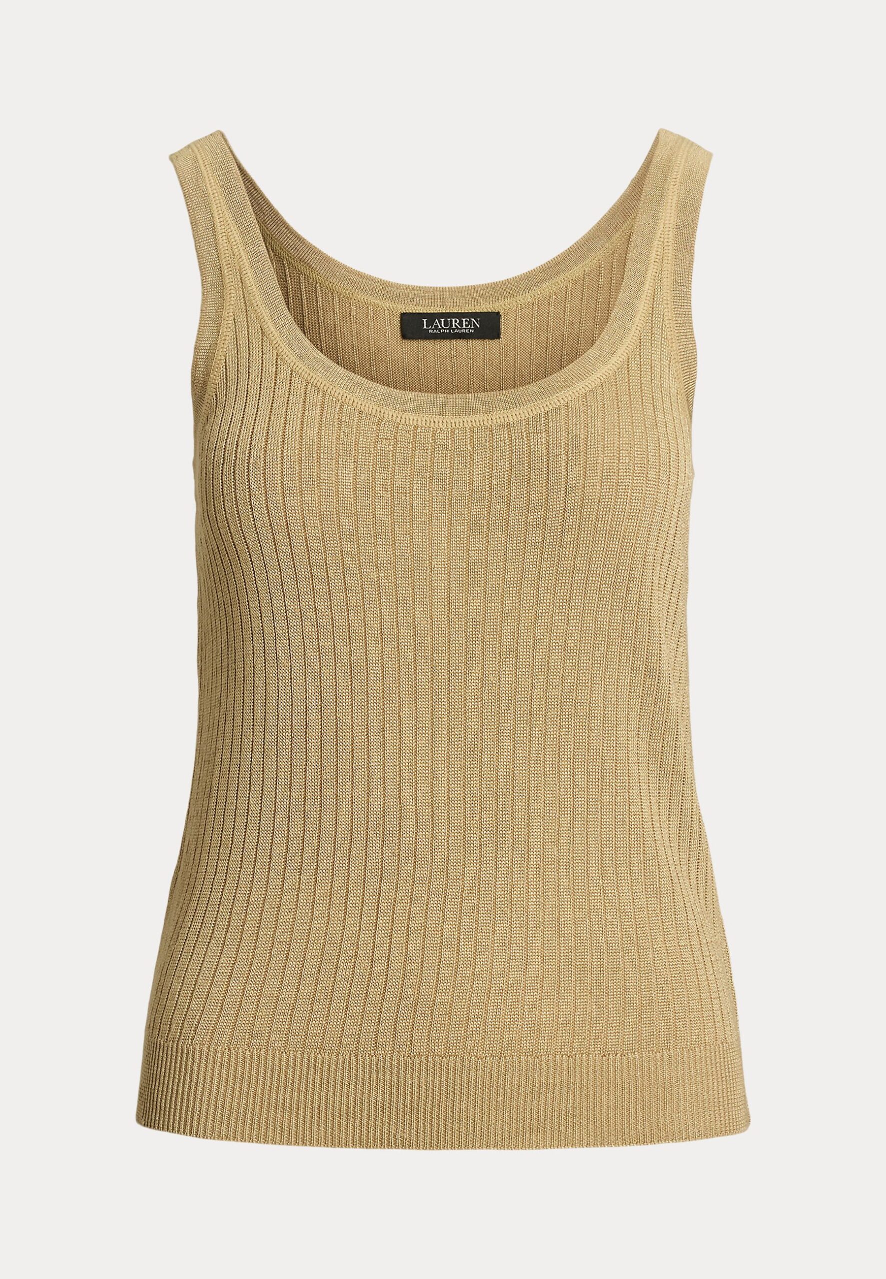 Rib Knit Linen Blend Sweater Tank Top – Top – camel