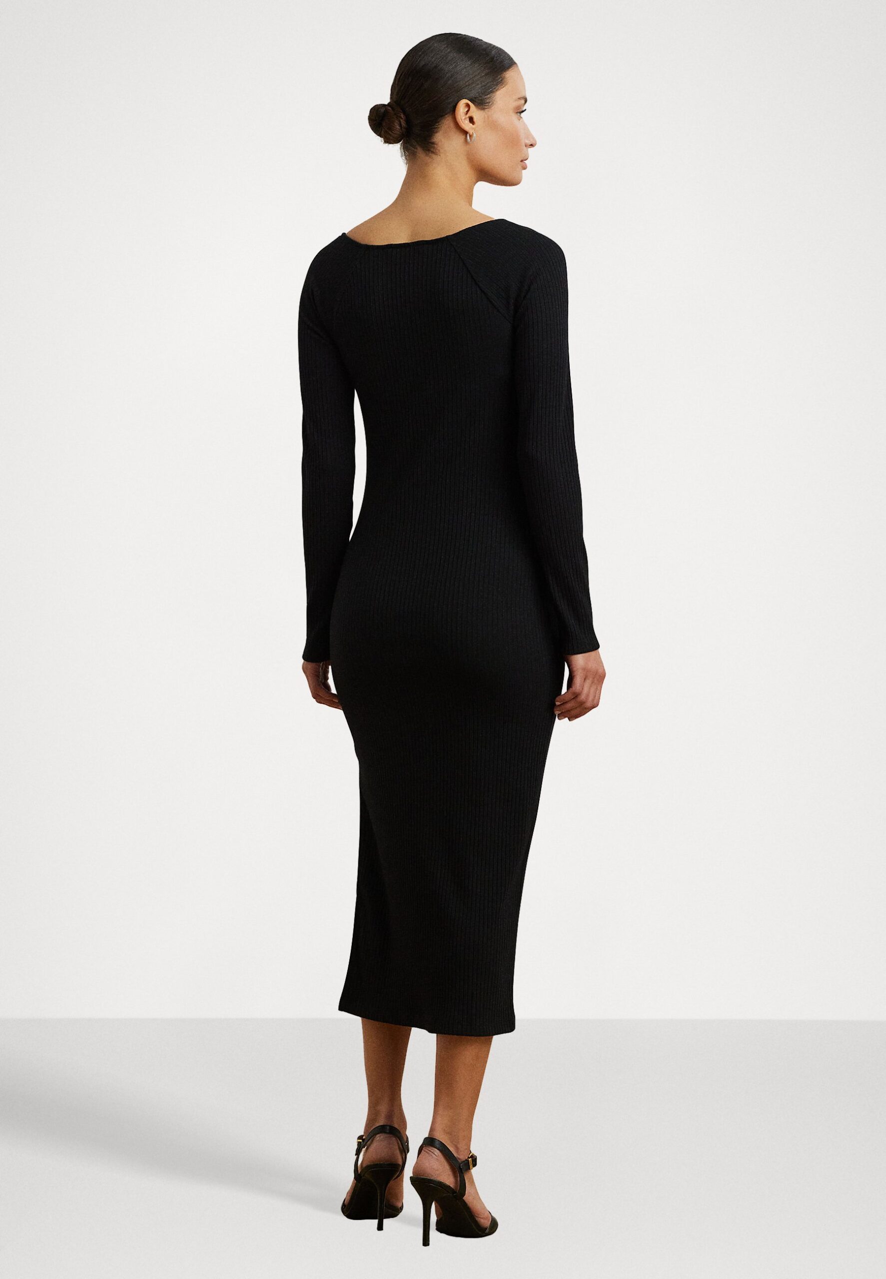 Rib Knit Long Sleeve Midi Dress – Jumper dress – black