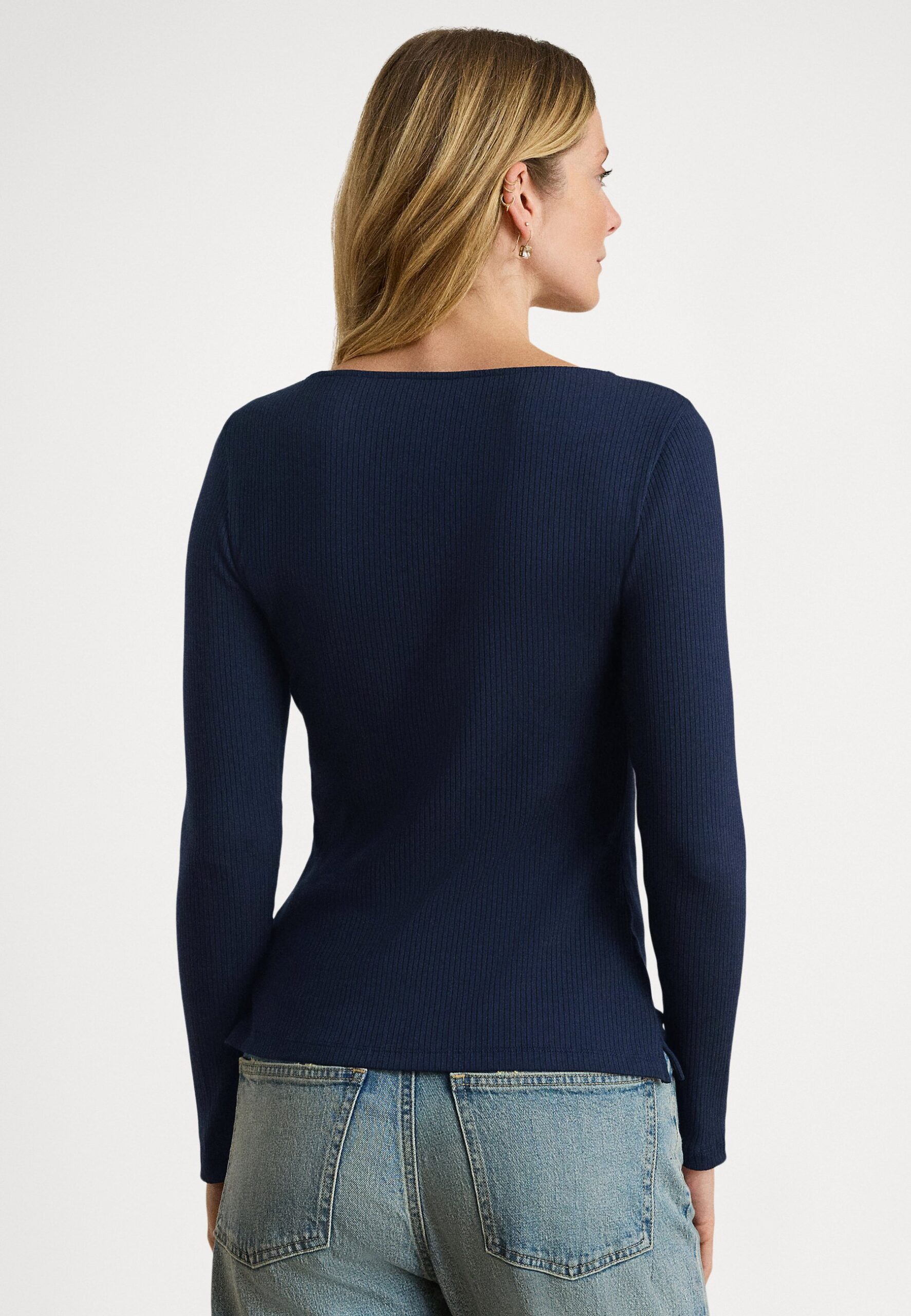 RIB KNIT LONG SLEEVE SCOOPNECK TEE – Long sleeved top – navy