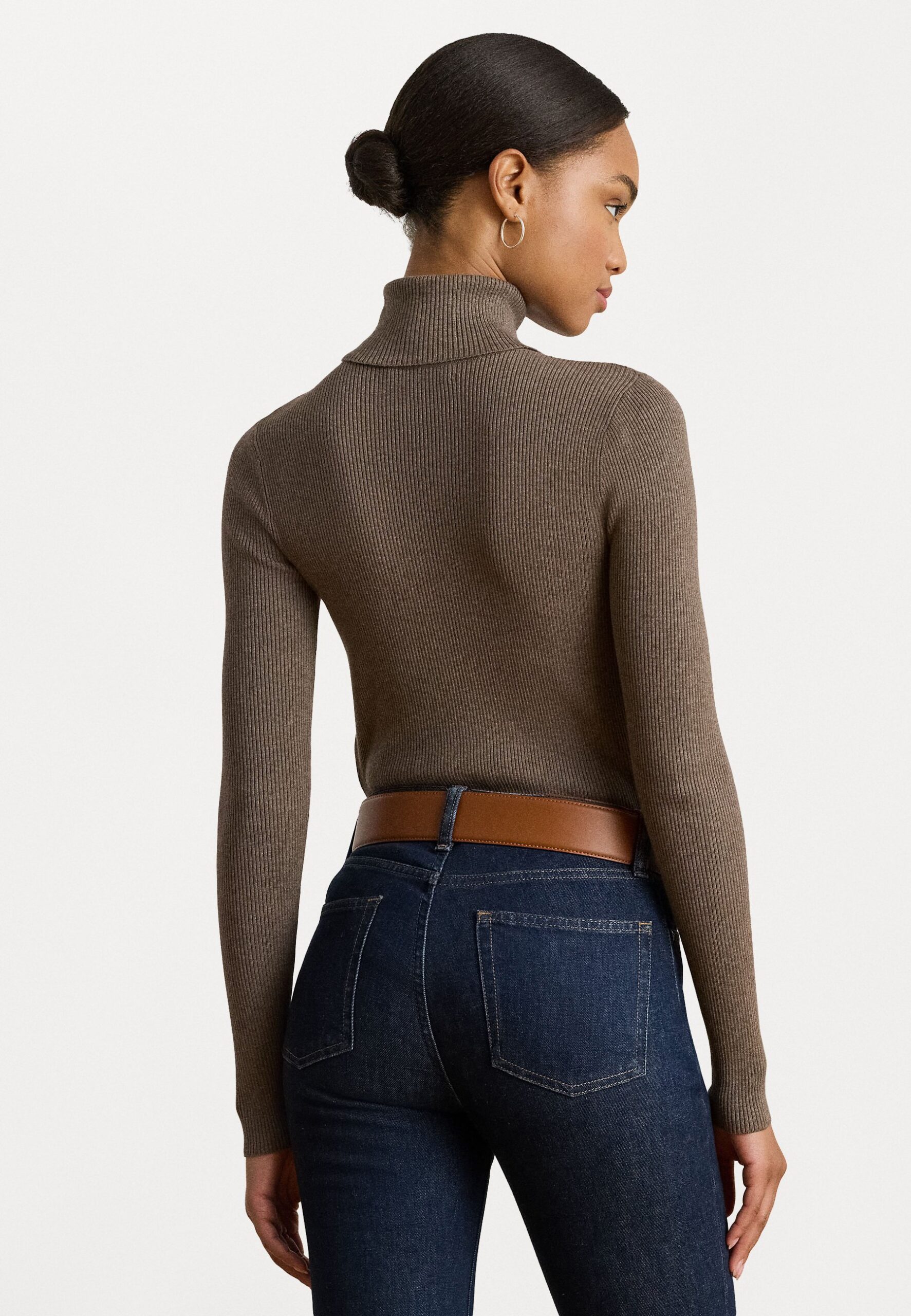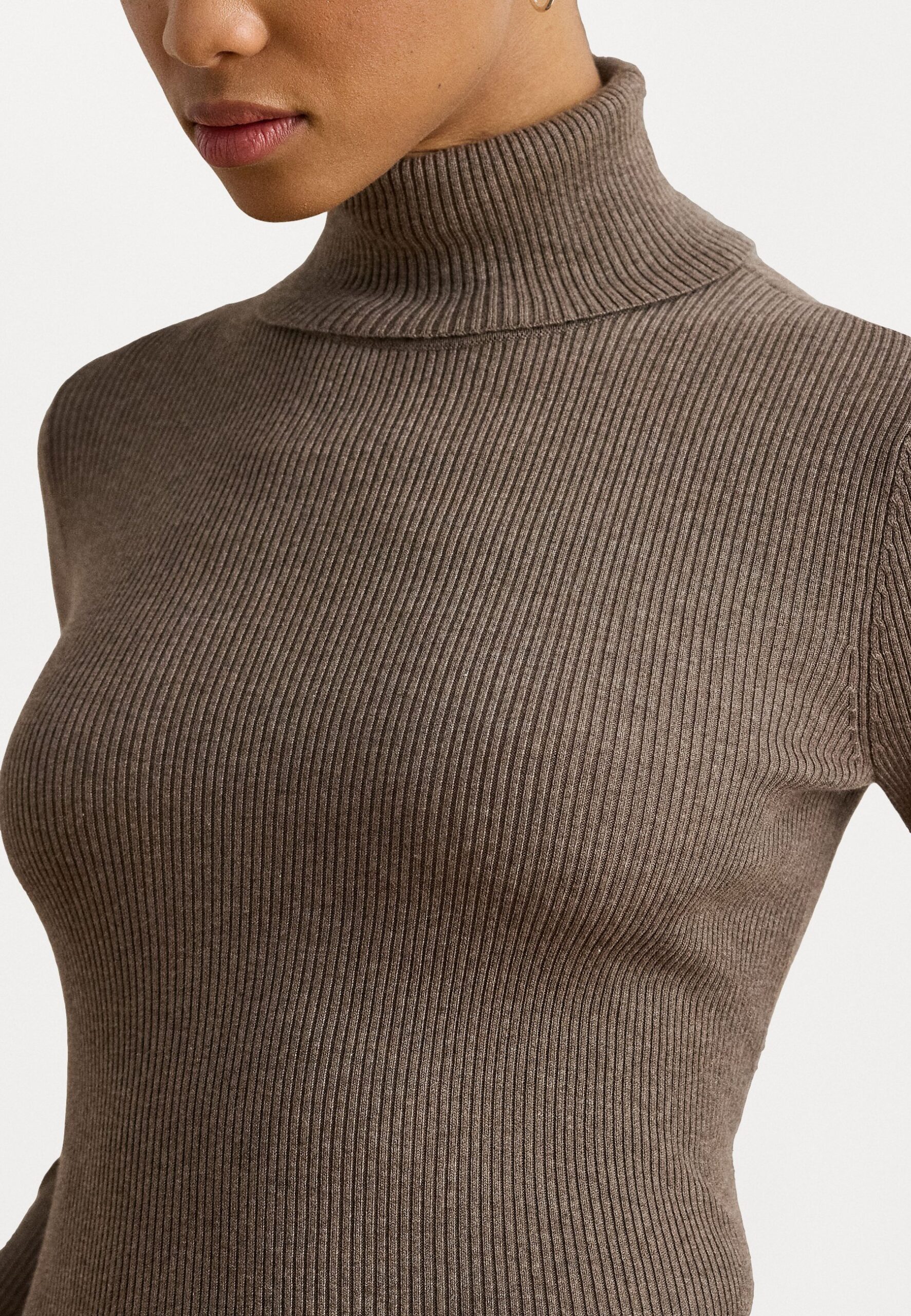 RIB KNIT ROLL NECK JUMPER – Jumper – taupe brown heather
