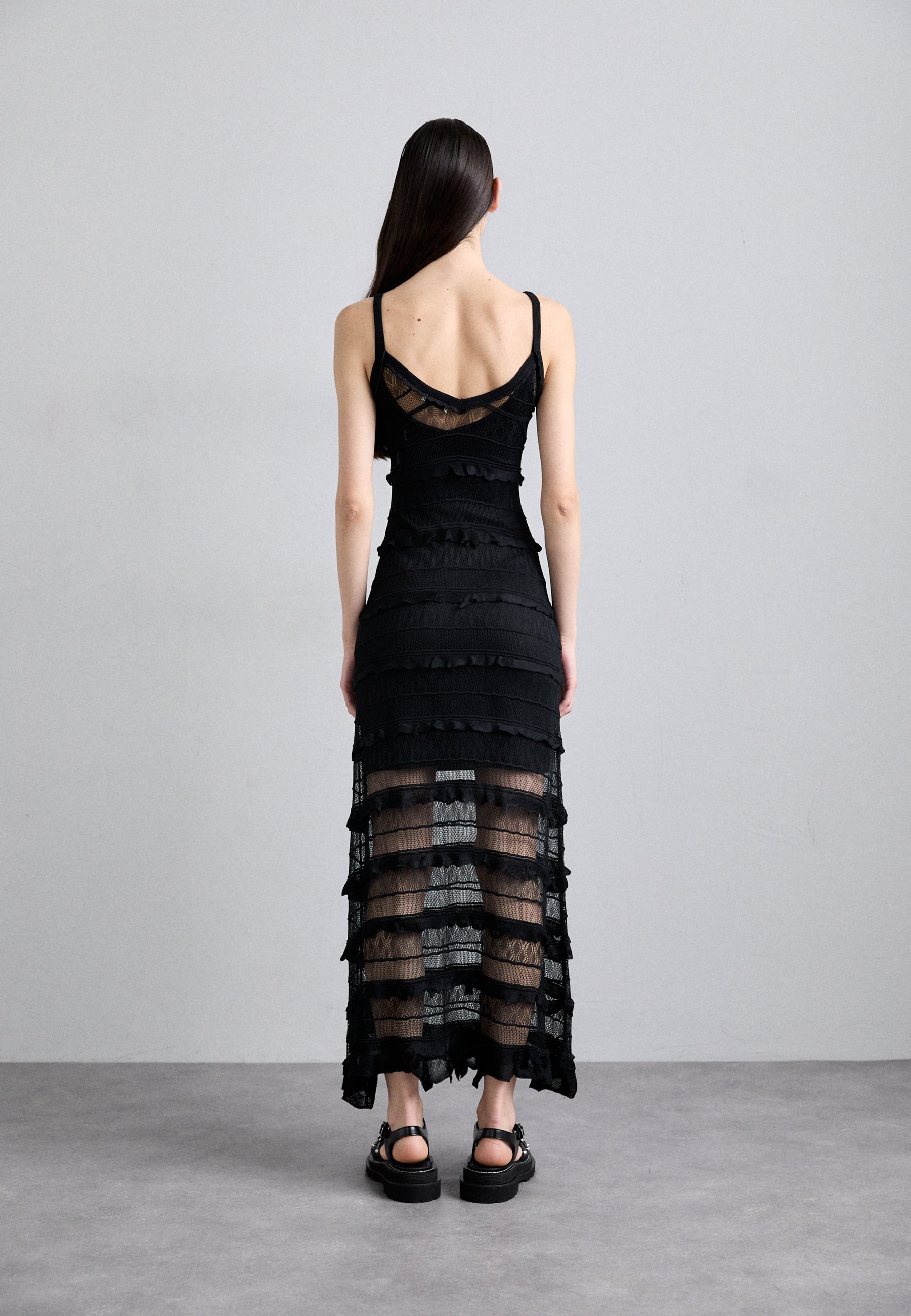 ROBE BRETELLE VOLANTS – Maxi dress – noir