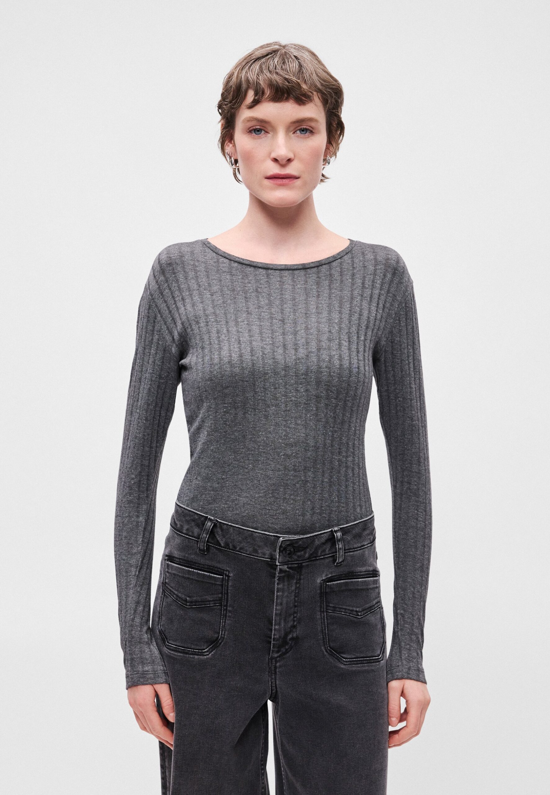 ROUND NECK LONG SLEEVE – Long sleeved top – warm granite melange