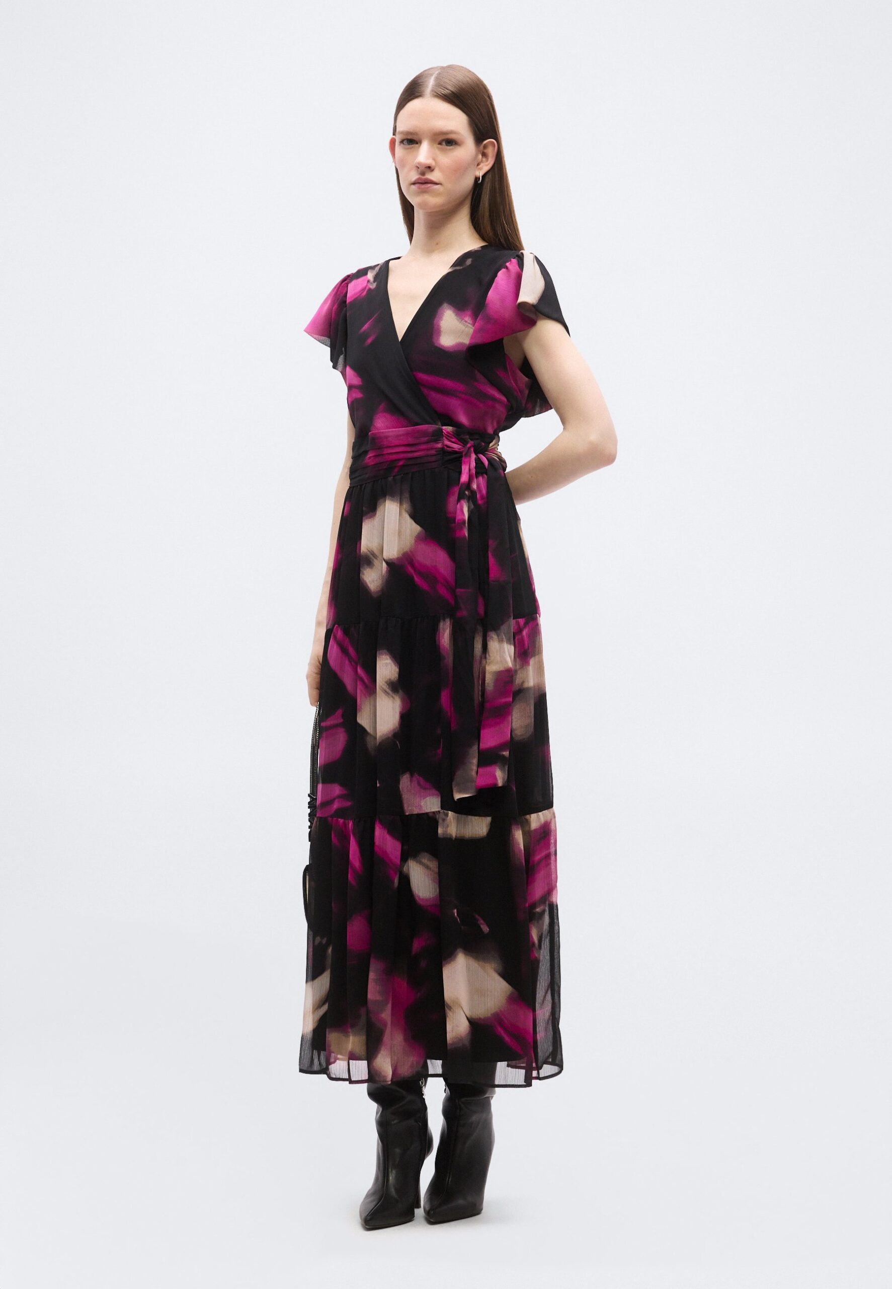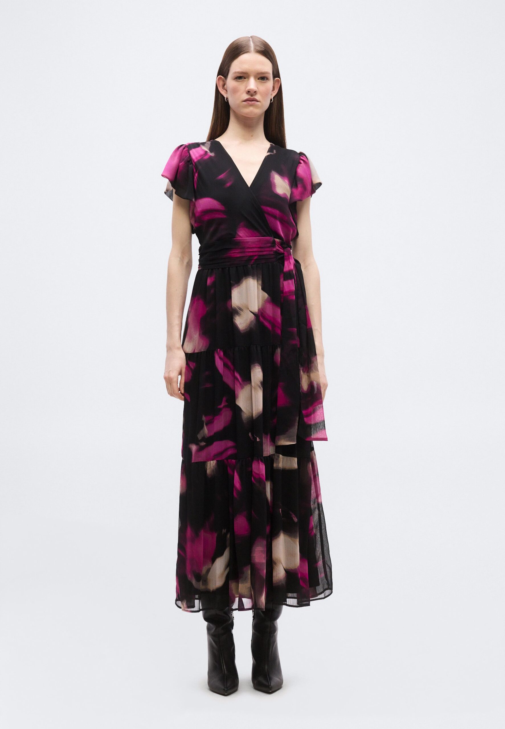 RUFFLE V NECK TIERED – Maxi dress – pink/multi