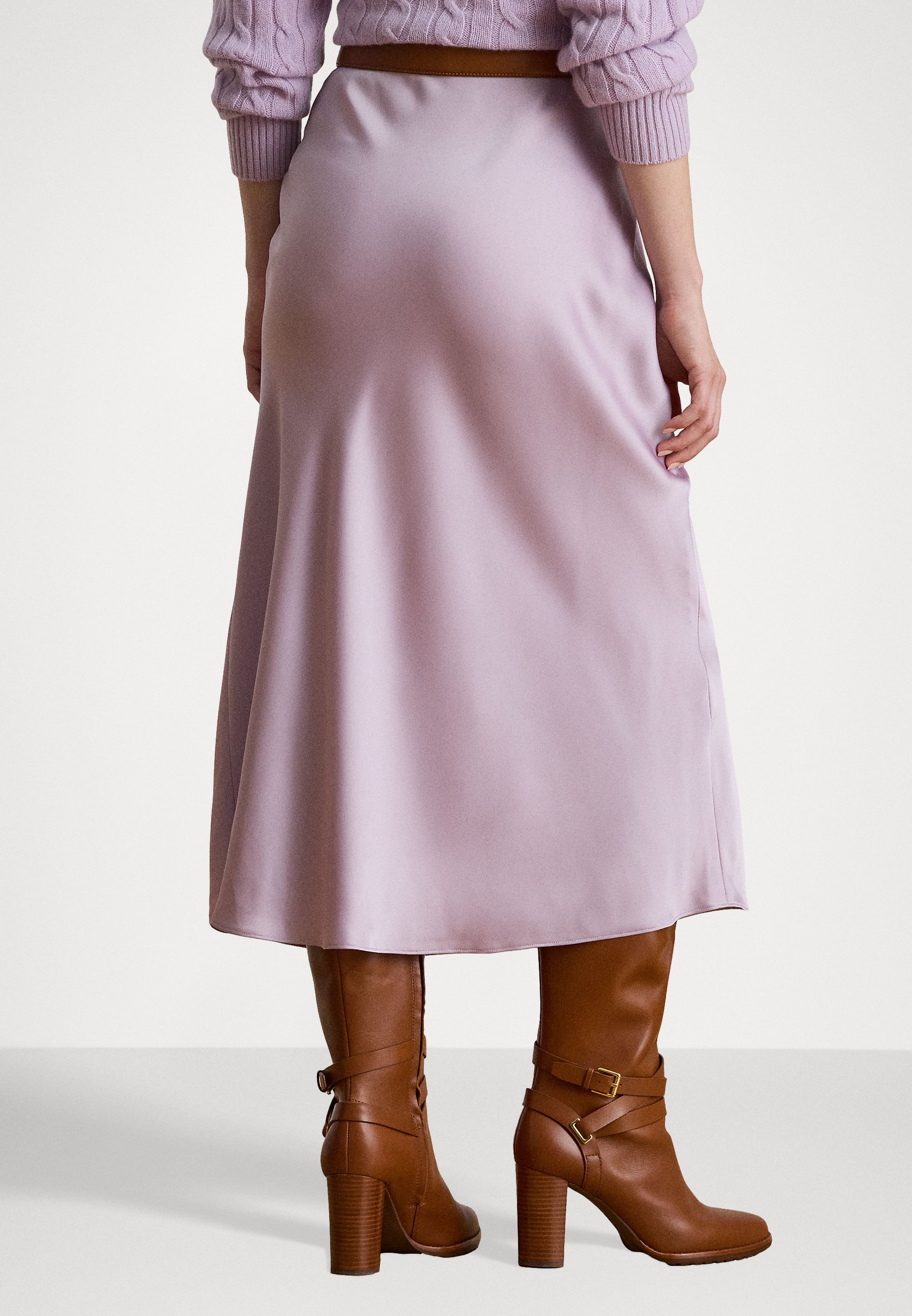 SATIN CHARMEUSE MIDI SKIRT – A-line skirt – lavender frost