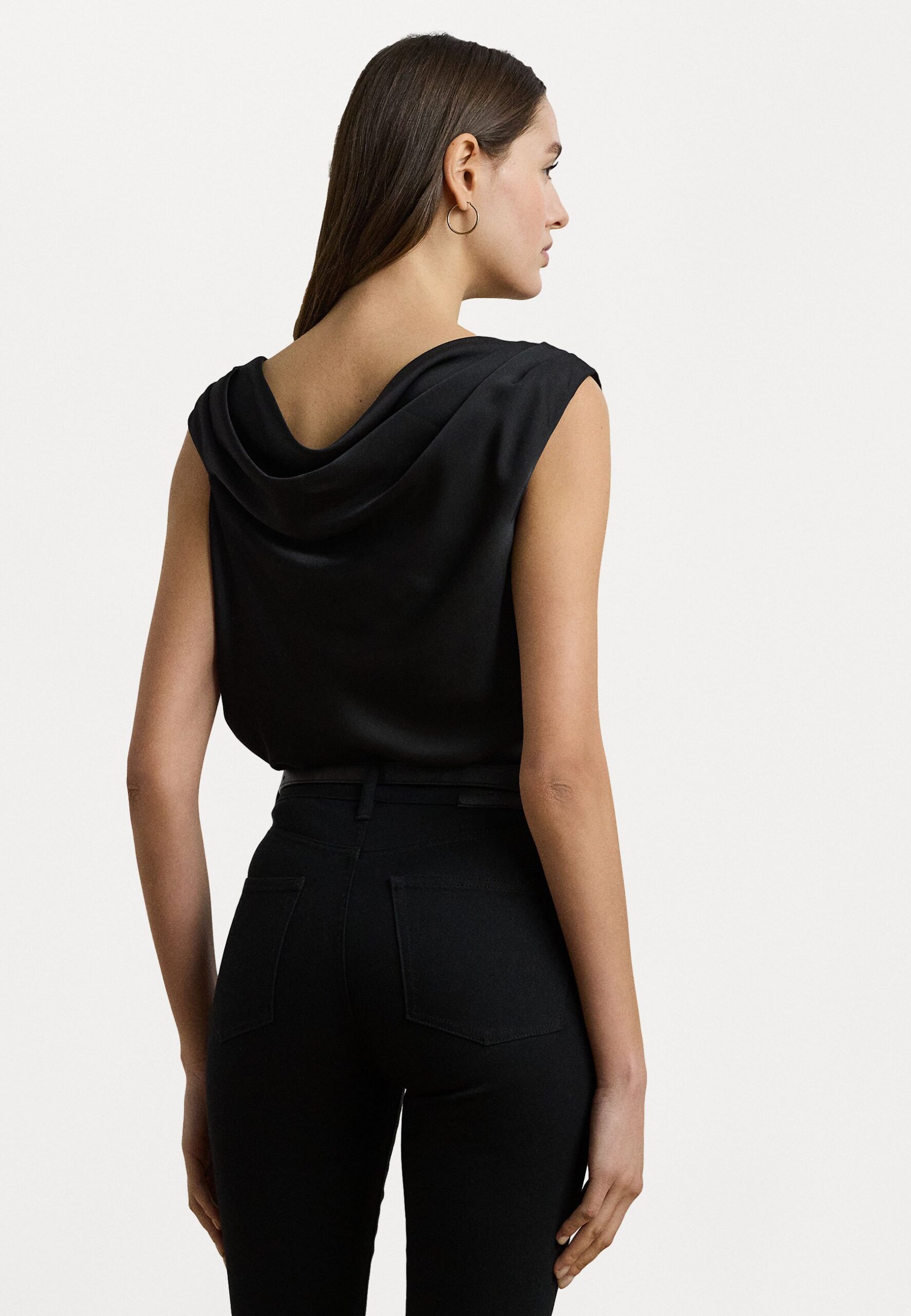 SATIN CHARMEUSE OFF THE SHOULDER BLOUSE – Blouse – black