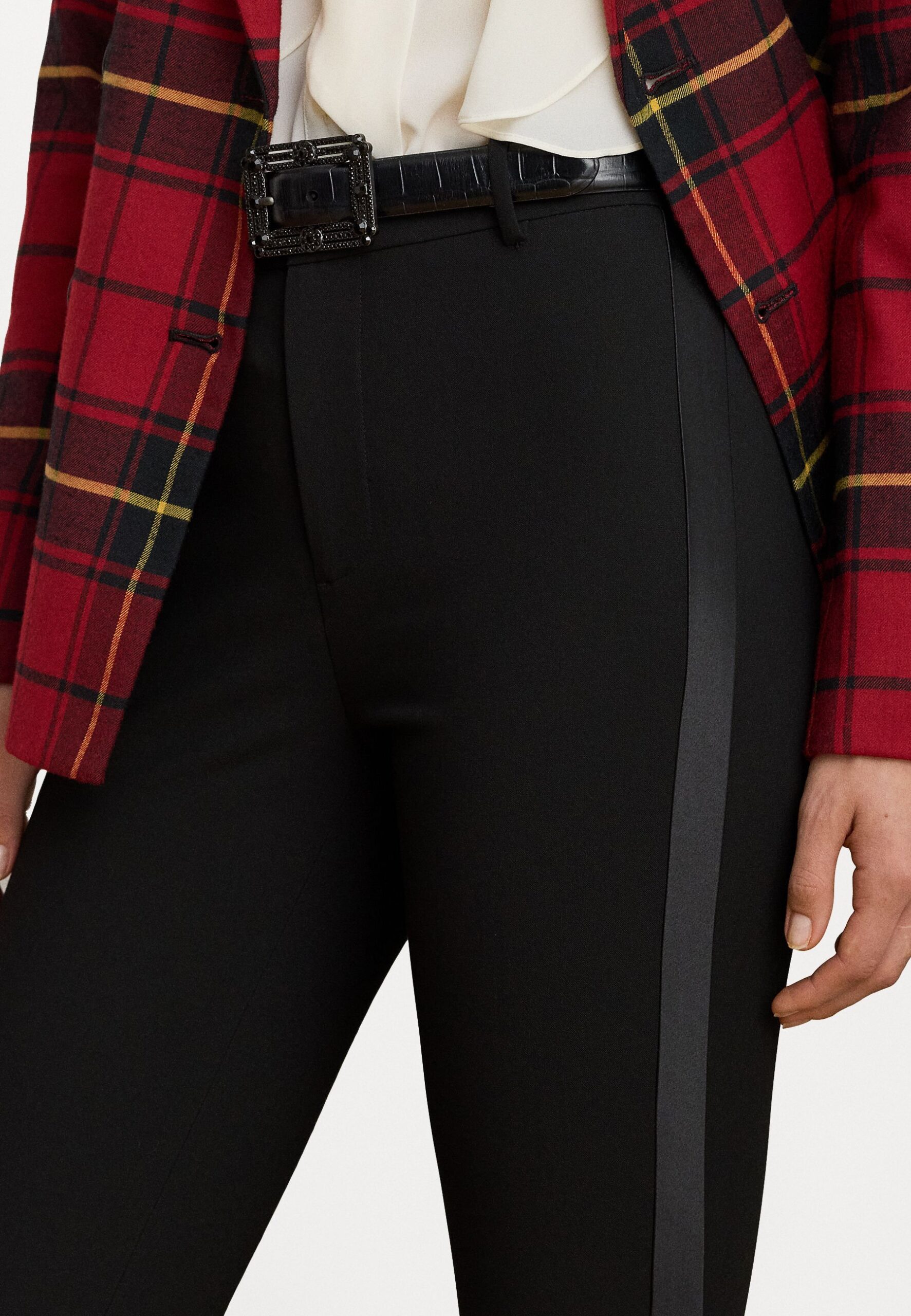 SATIN-TRIM DOUBLE-FACED CREPE PANT – Trousers – black