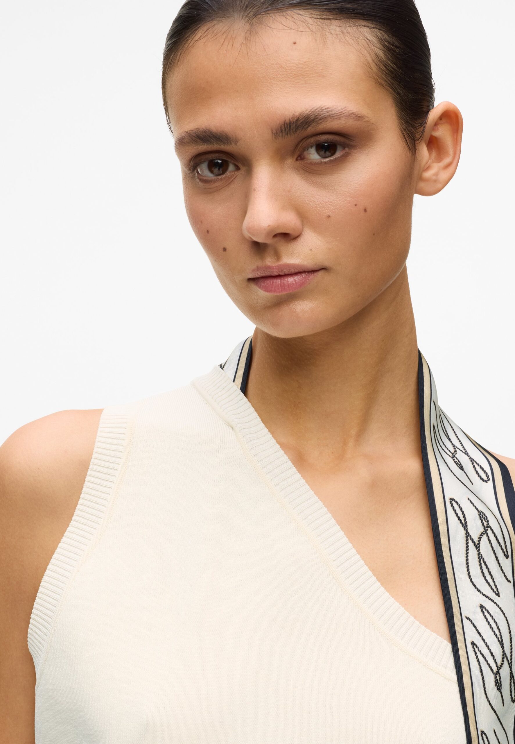 SCARF PRINT KNIT – Top – cannoli cream
