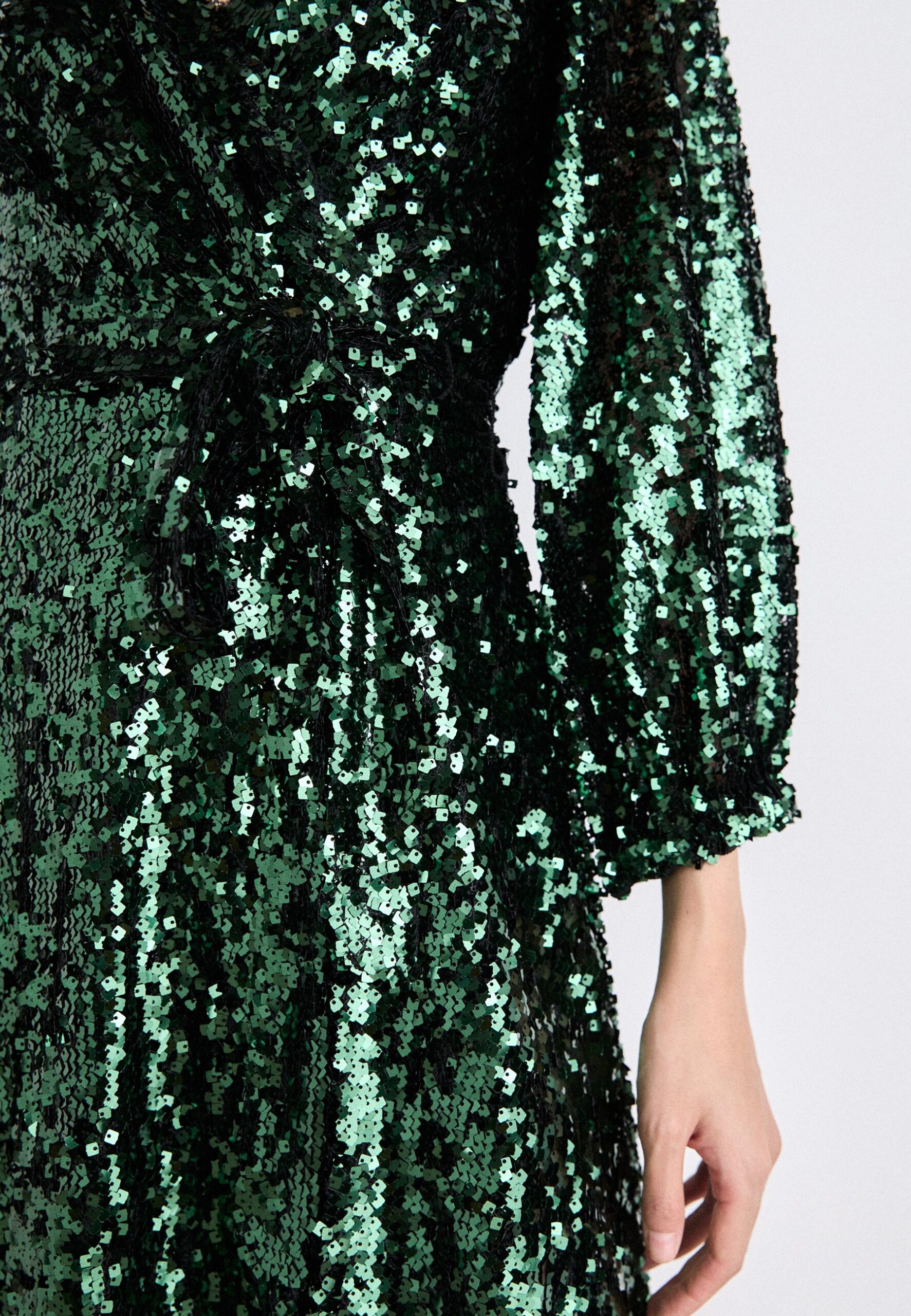 SEQUIN SURPLICE WRAP – Cocktail dress / Party dress – pine/black