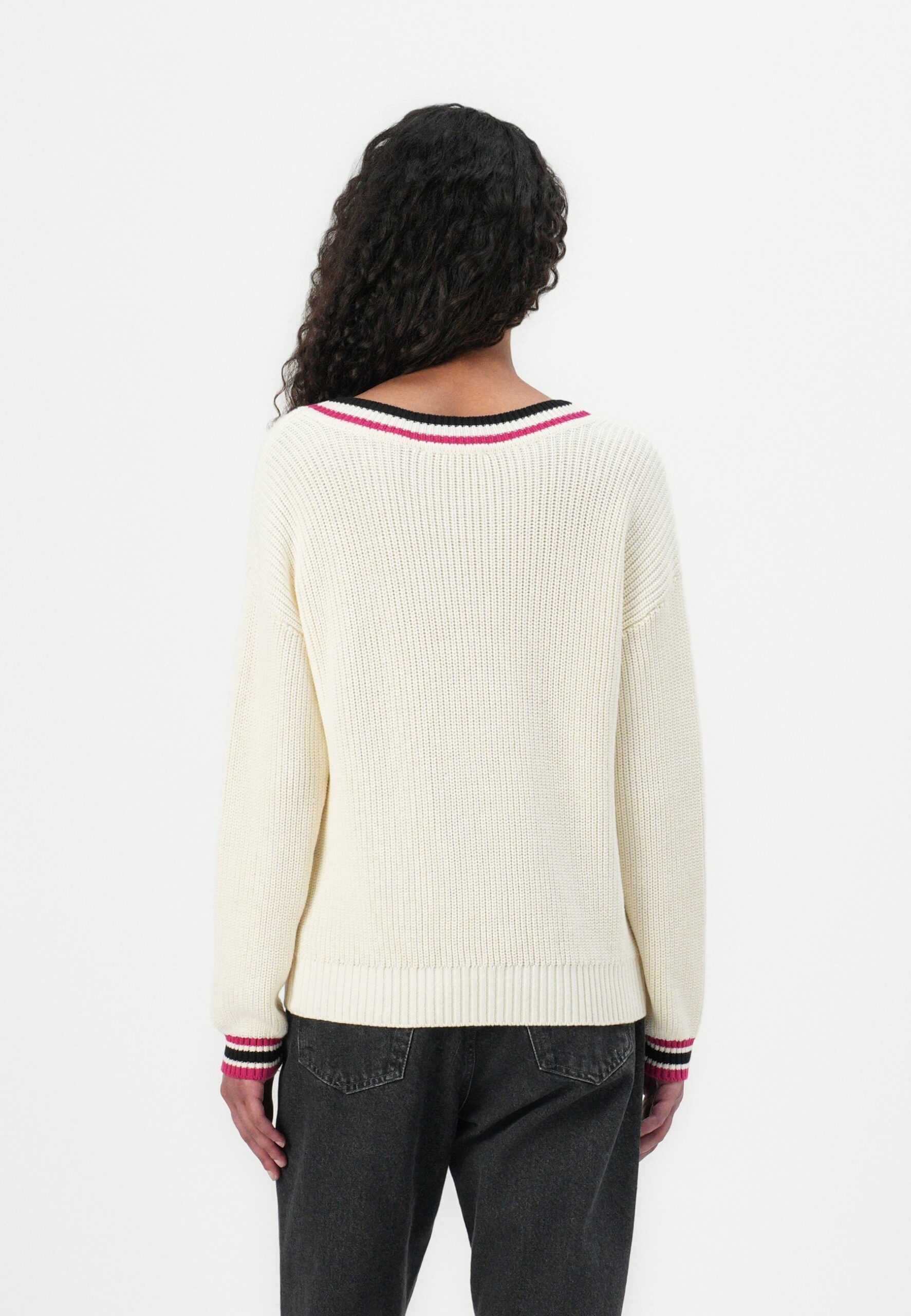 SHAKER STITCH V NECK PULLOVER – Jumper – eggnog