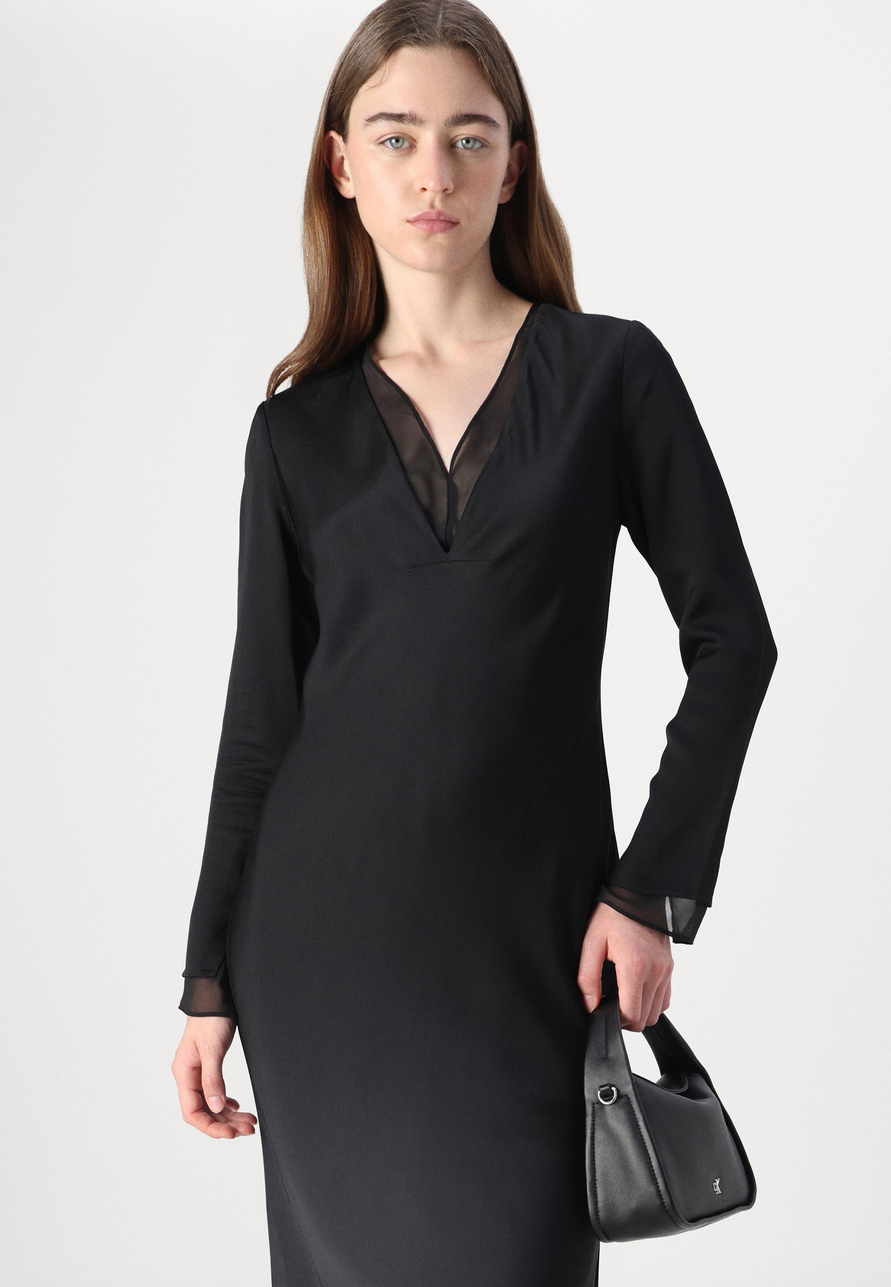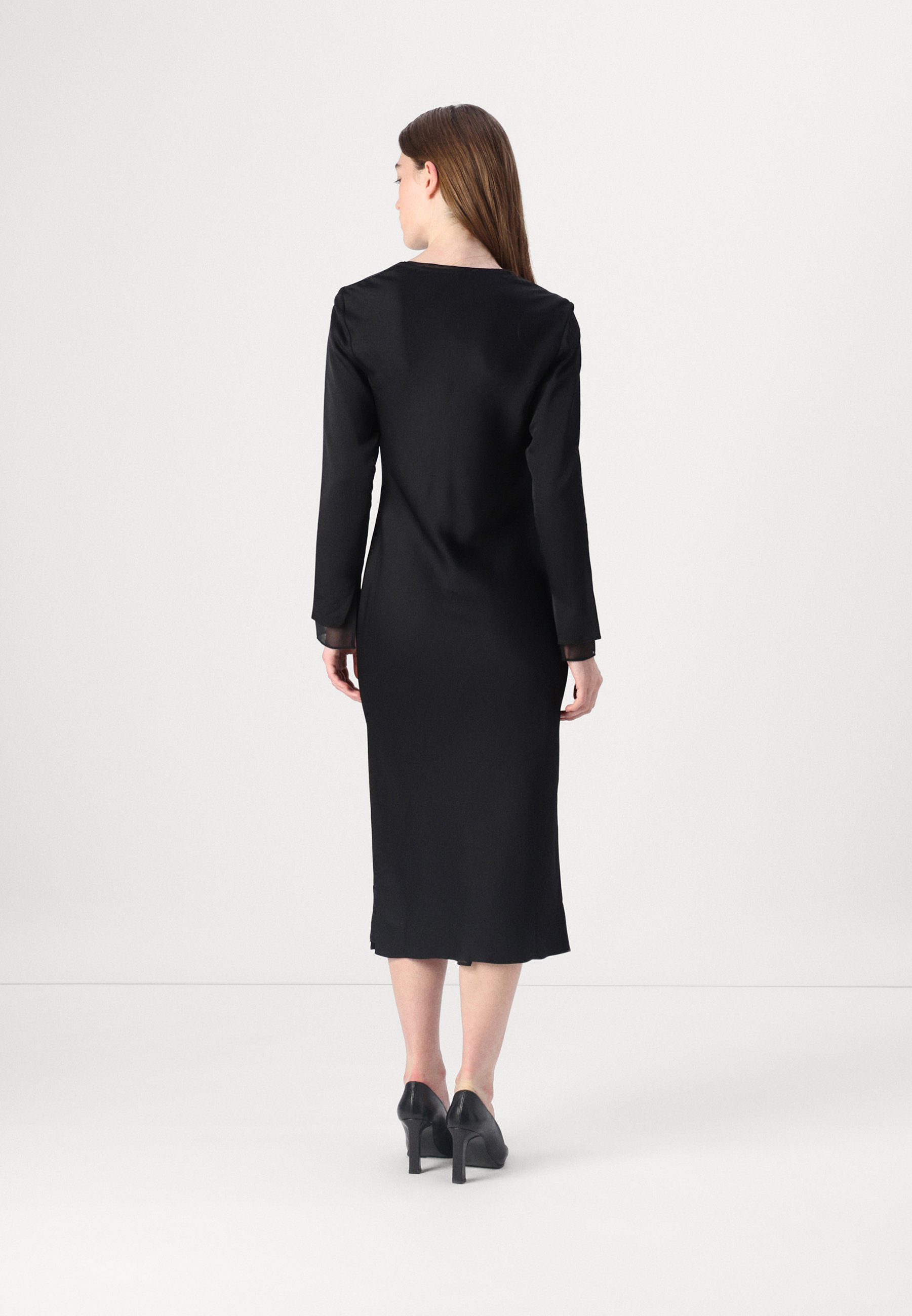SHEER PANEL SHIFT MIDI DRESS – Shift dress – black