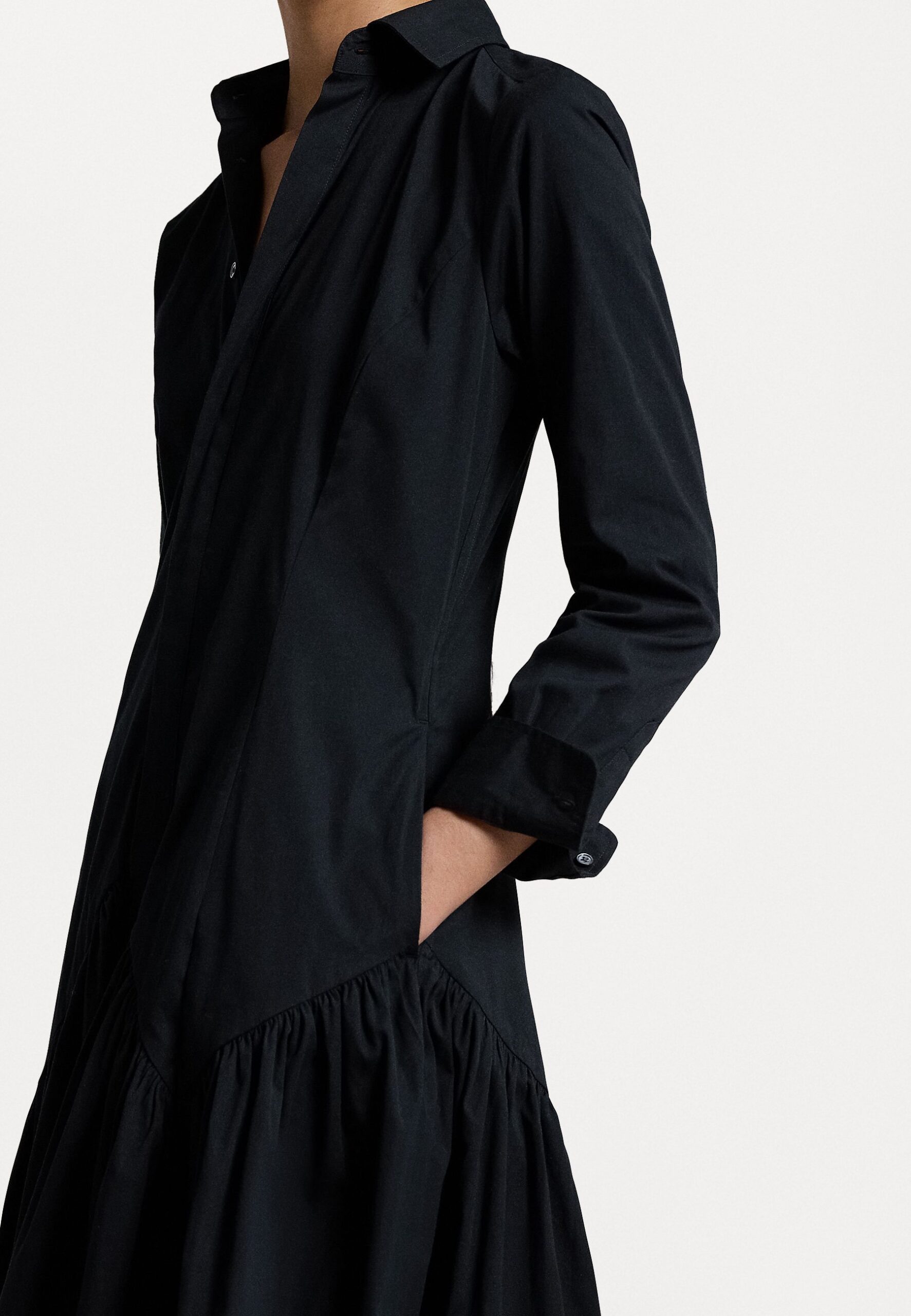 SHIRRED YOKE OXFORD SHIRTDRESS – Maxi dress – black