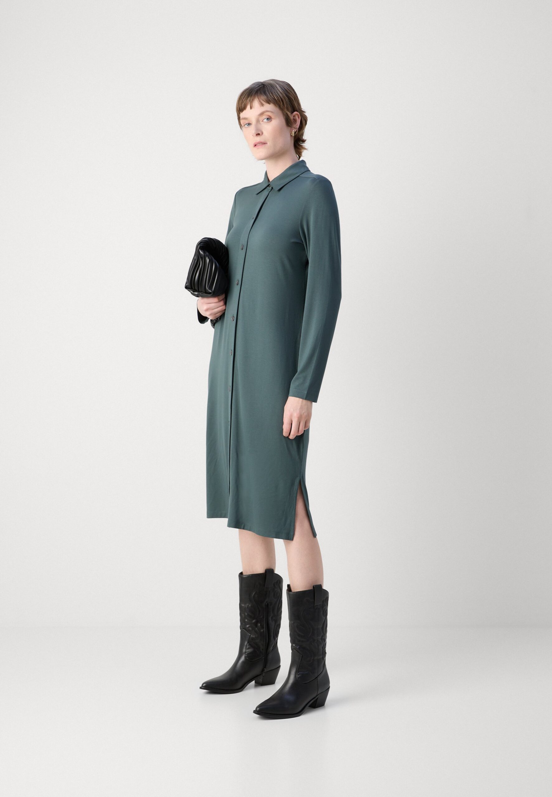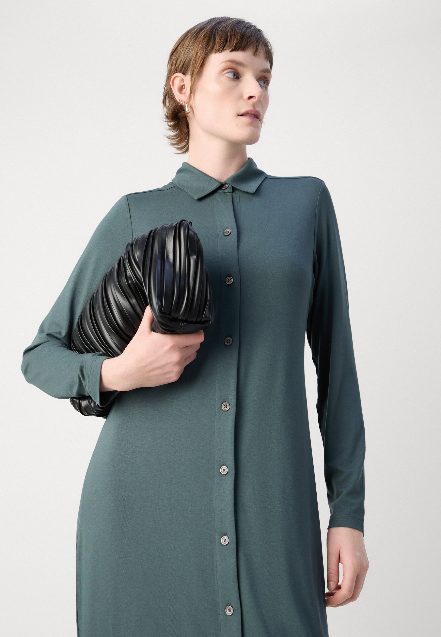 SHIRT DRESS – Jersey dress – deep emerald