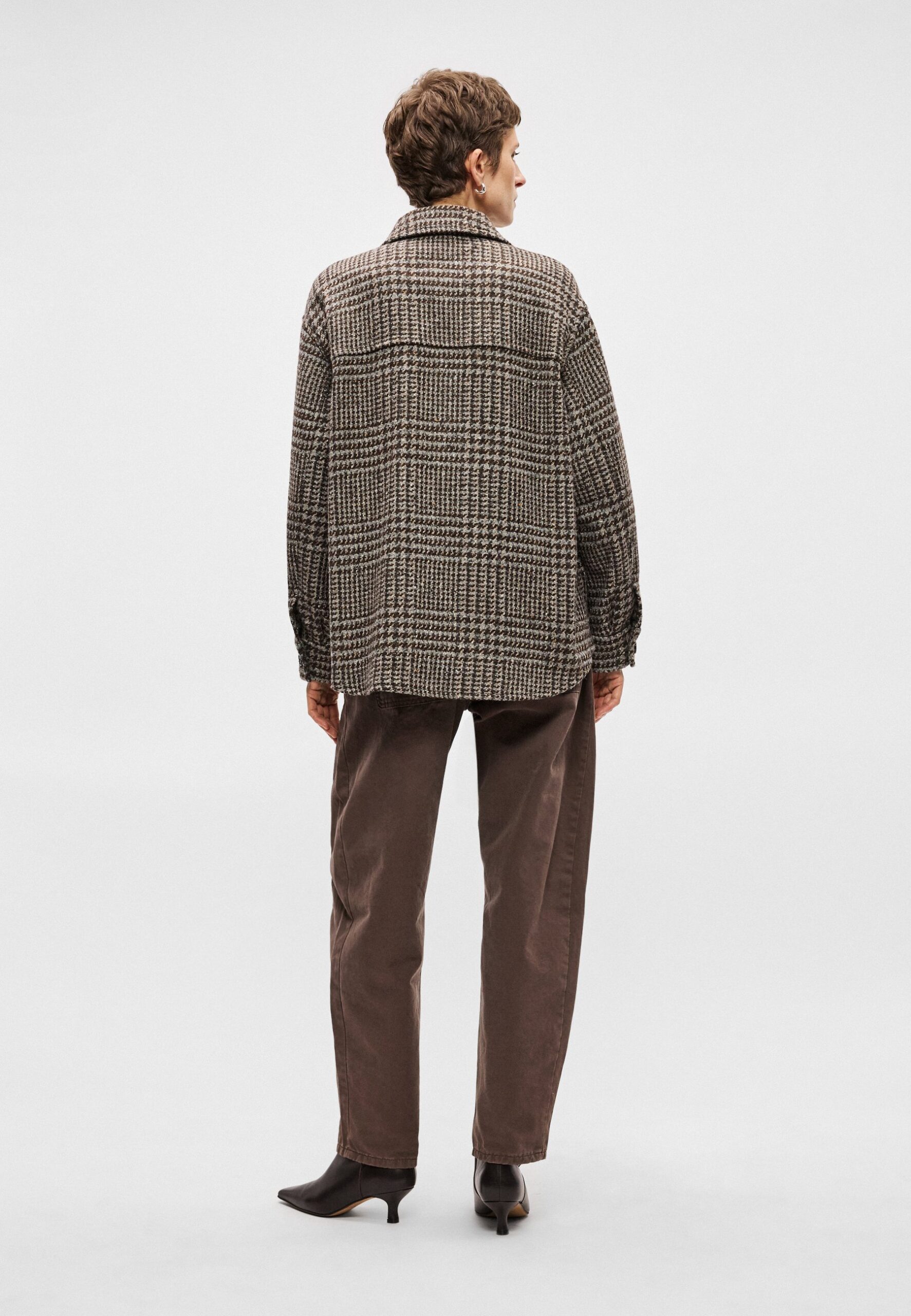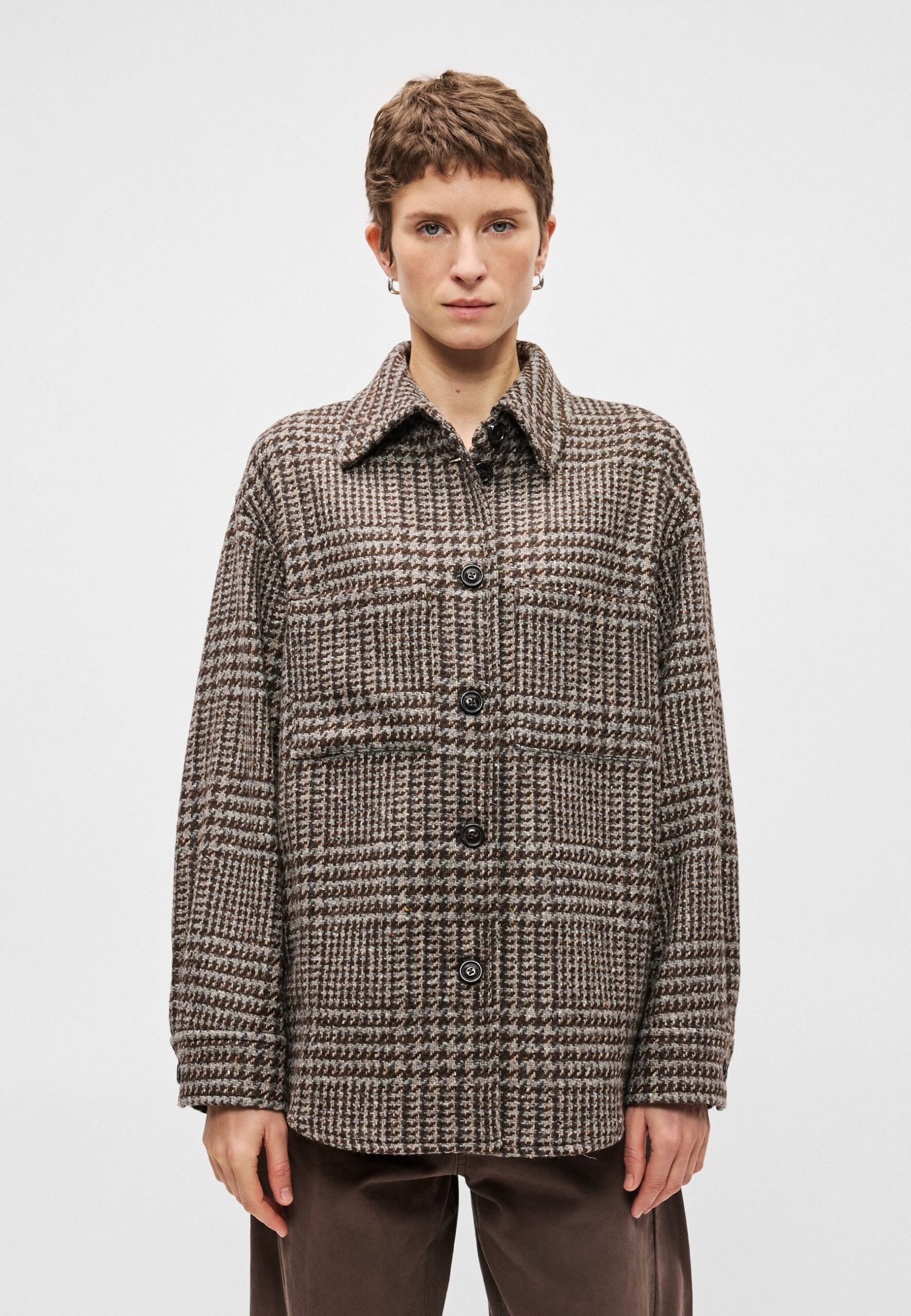 SHIRT JACKET CHECKED TURN DOWN COLLAR PATCHED POCKETS – Short coat – multi