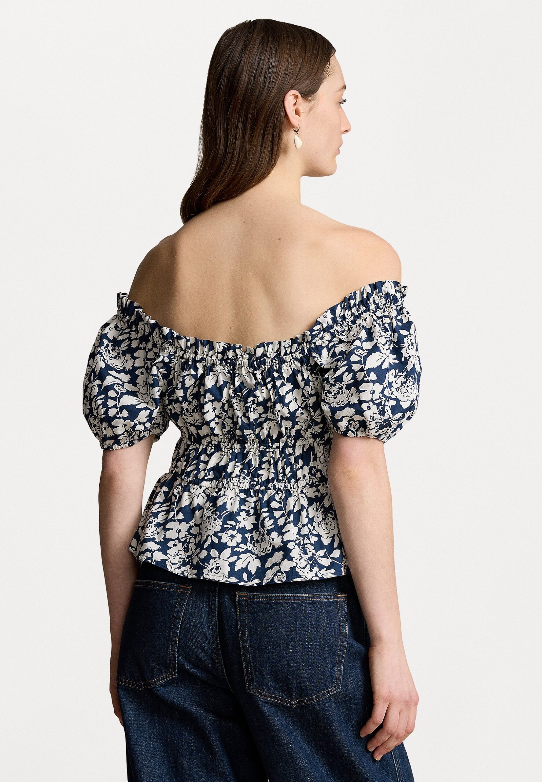 SHORT SLEEVE BLOUSE – Blouse – navy/white