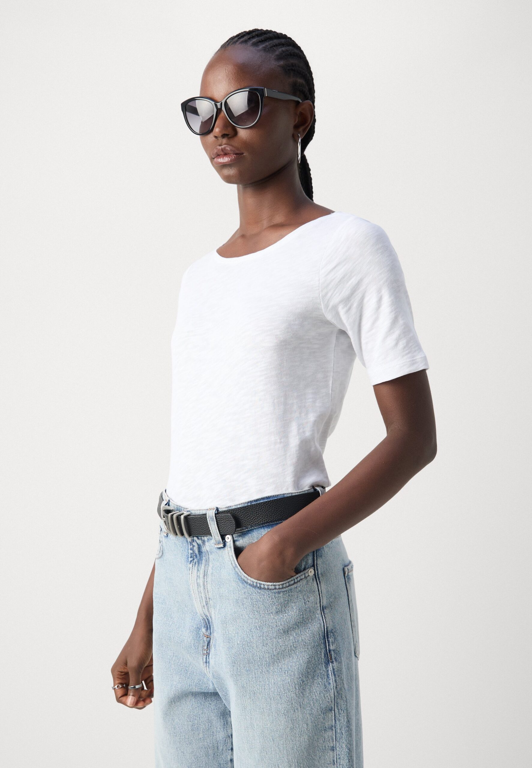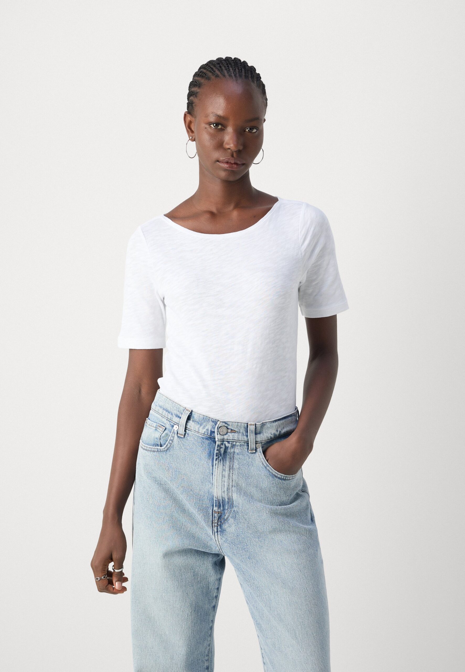 SHORT SLEEVE BOAT NECK – Basic T-shirt – white