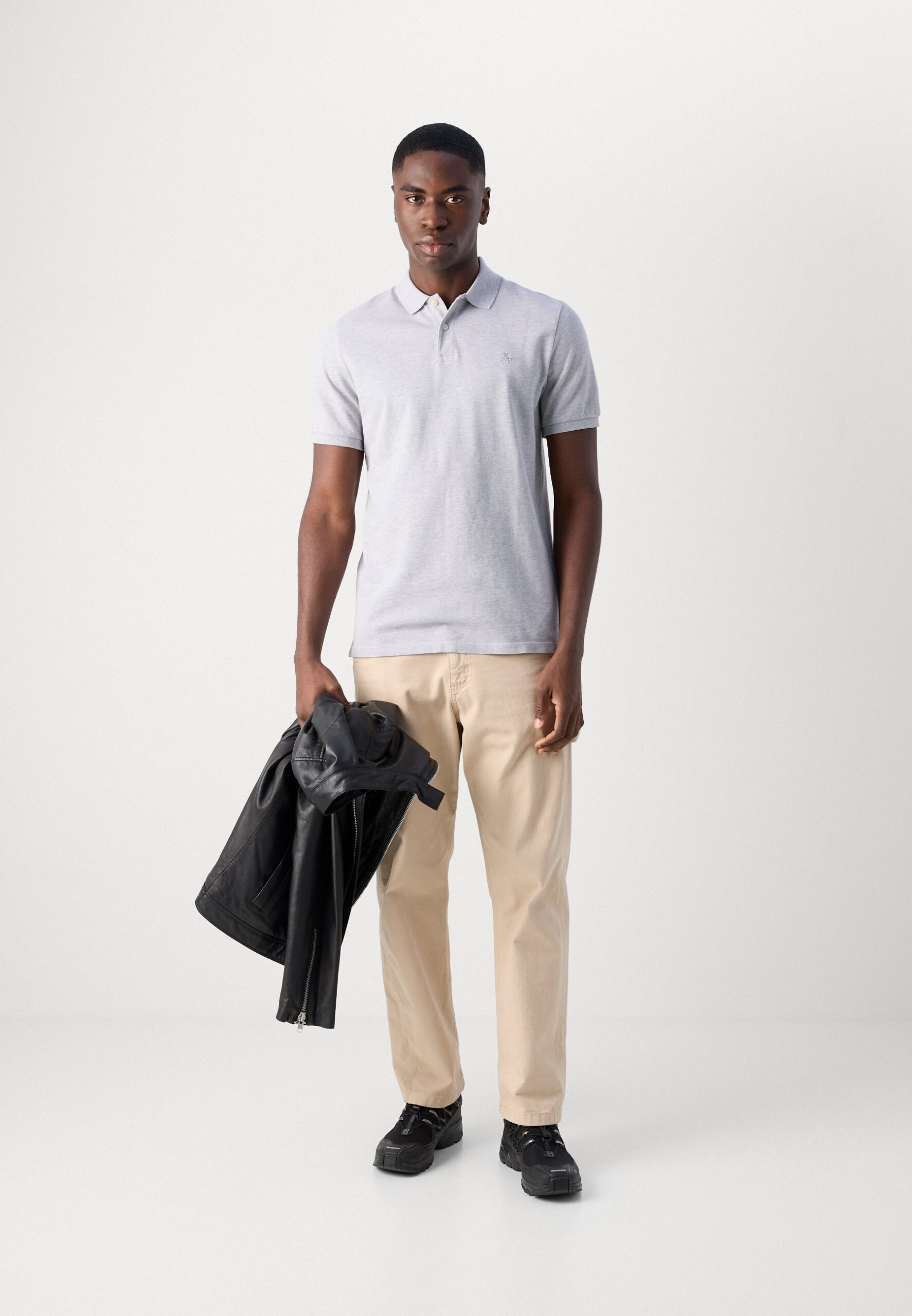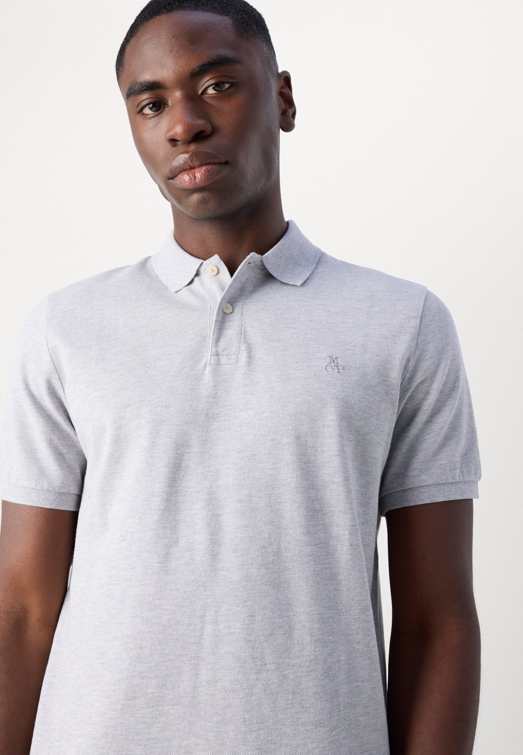 SHORT SLEEVE BUTTON PLACKET SLITS AT HEM – Polo shirt – iron grey melange