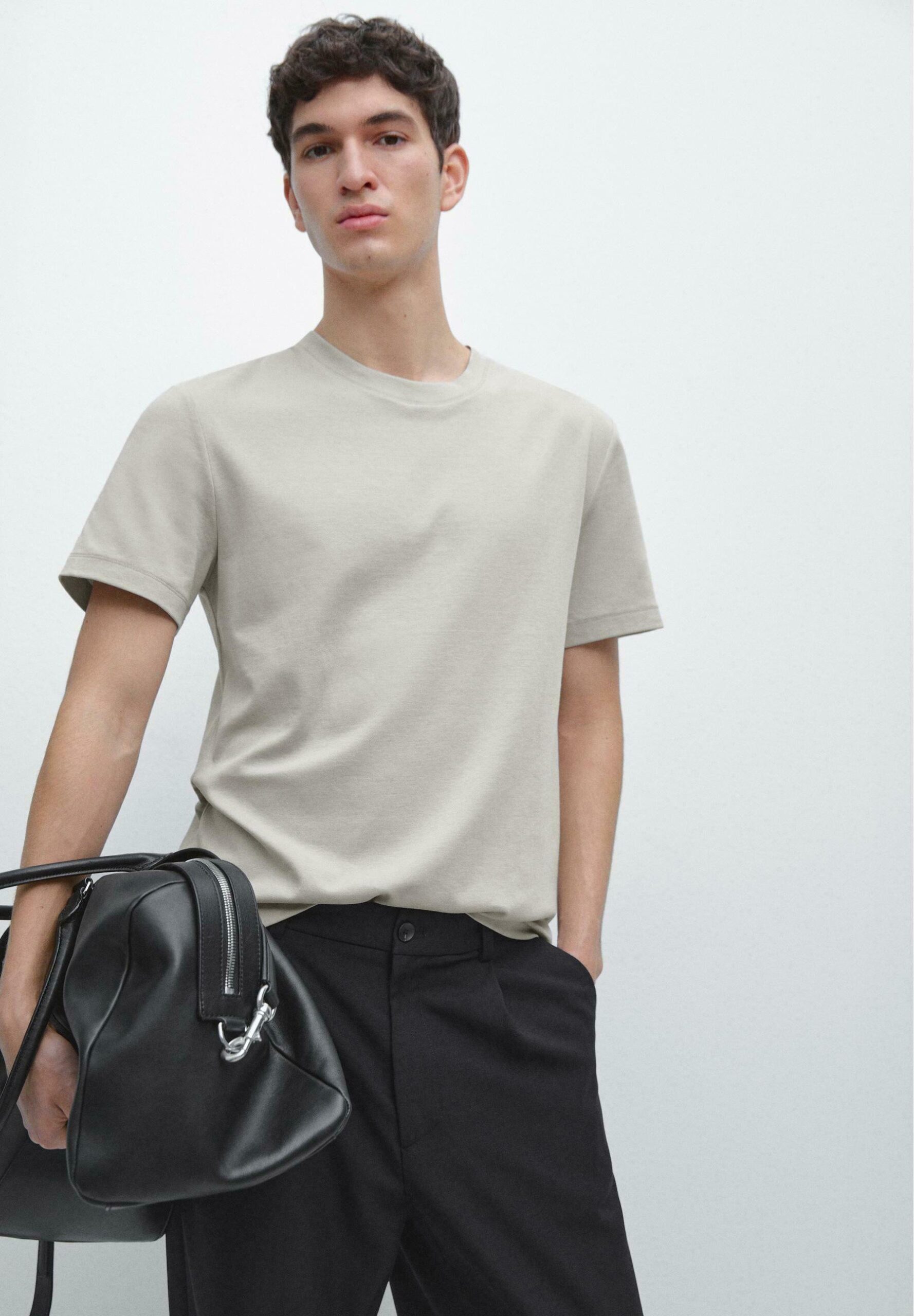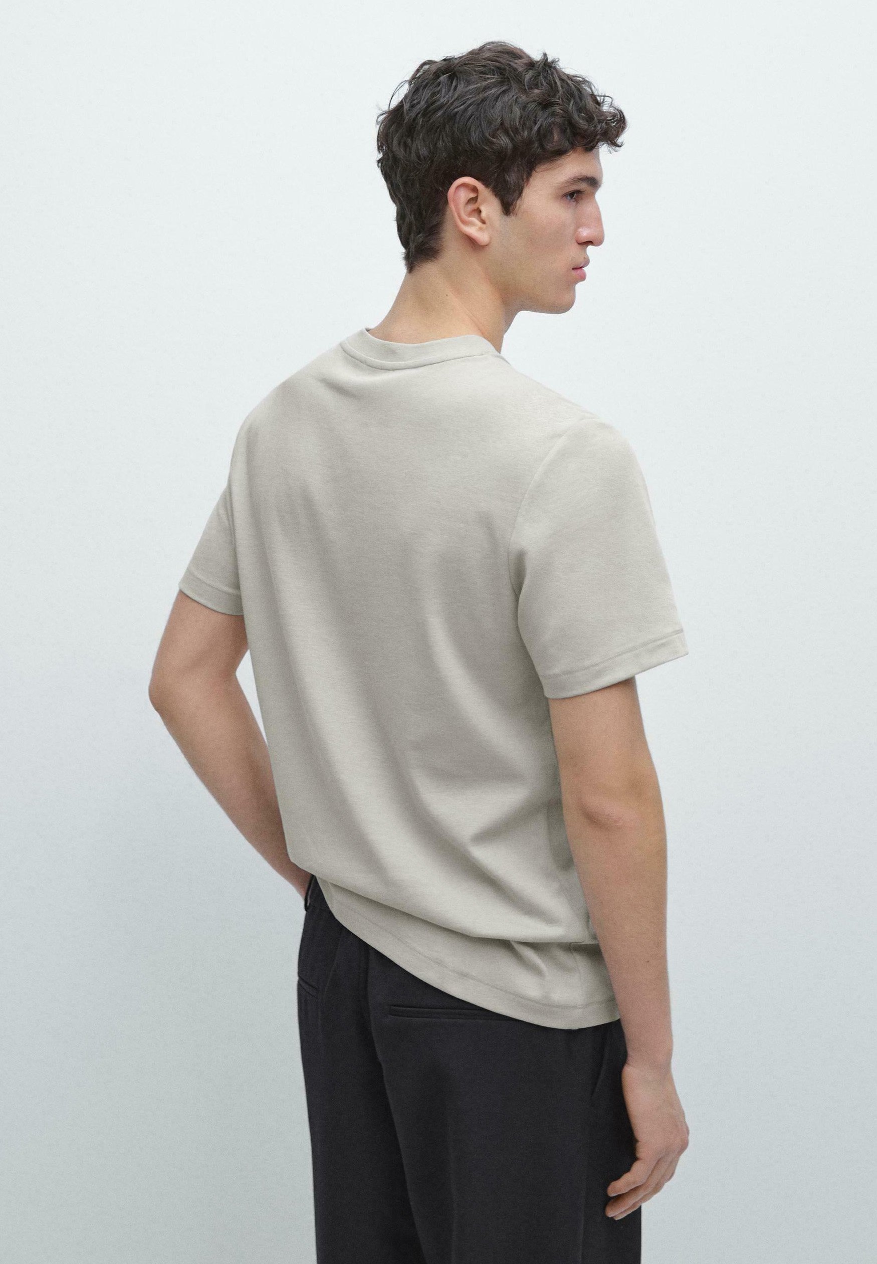 SHORT SLEEVE COTTON BLEND T-SHIRT – Basic T-shirt – beige