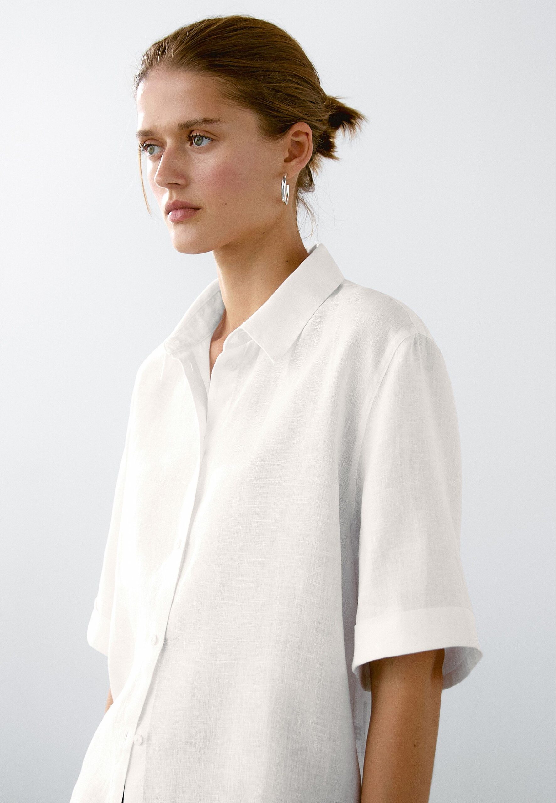 SHORT SLEEVE GARMENT – Button-down blouse – white