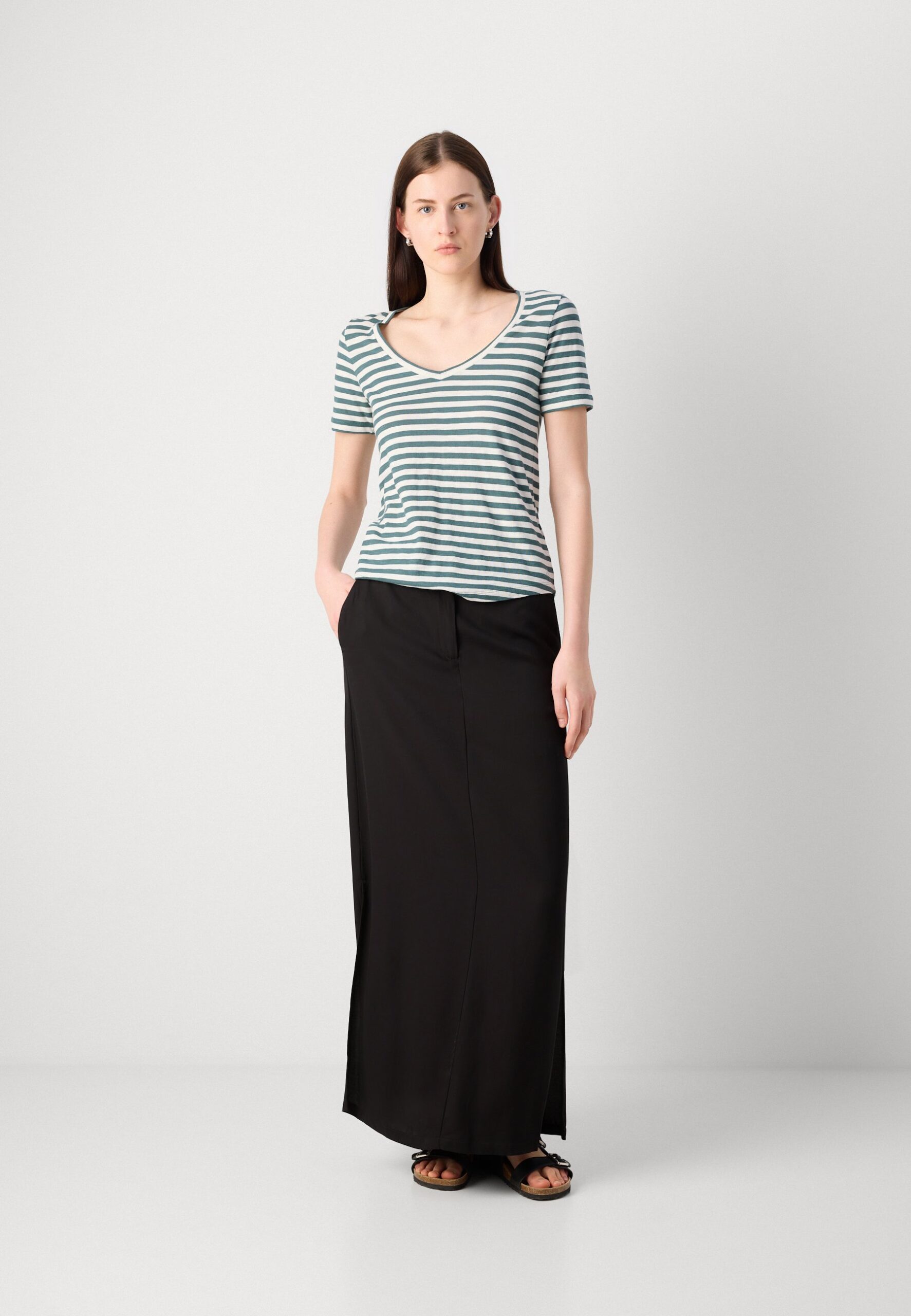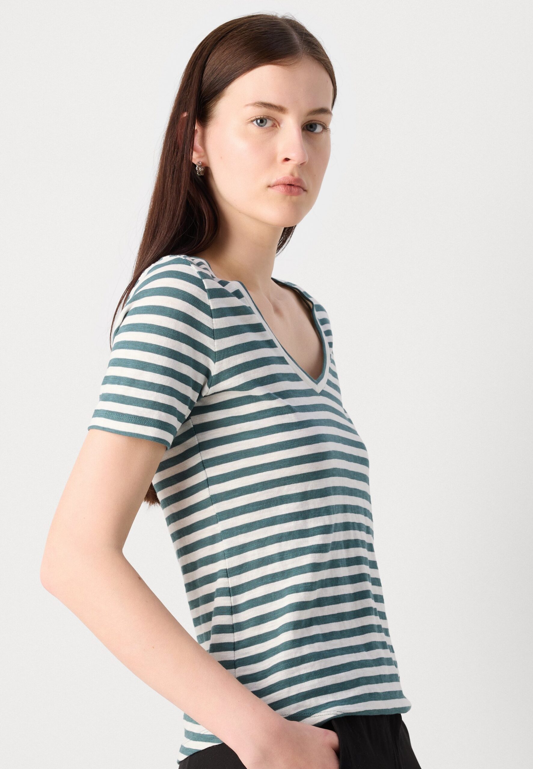 SHORT SLEEVE V NECK STRIPED – Print T-shirt – summer pine
