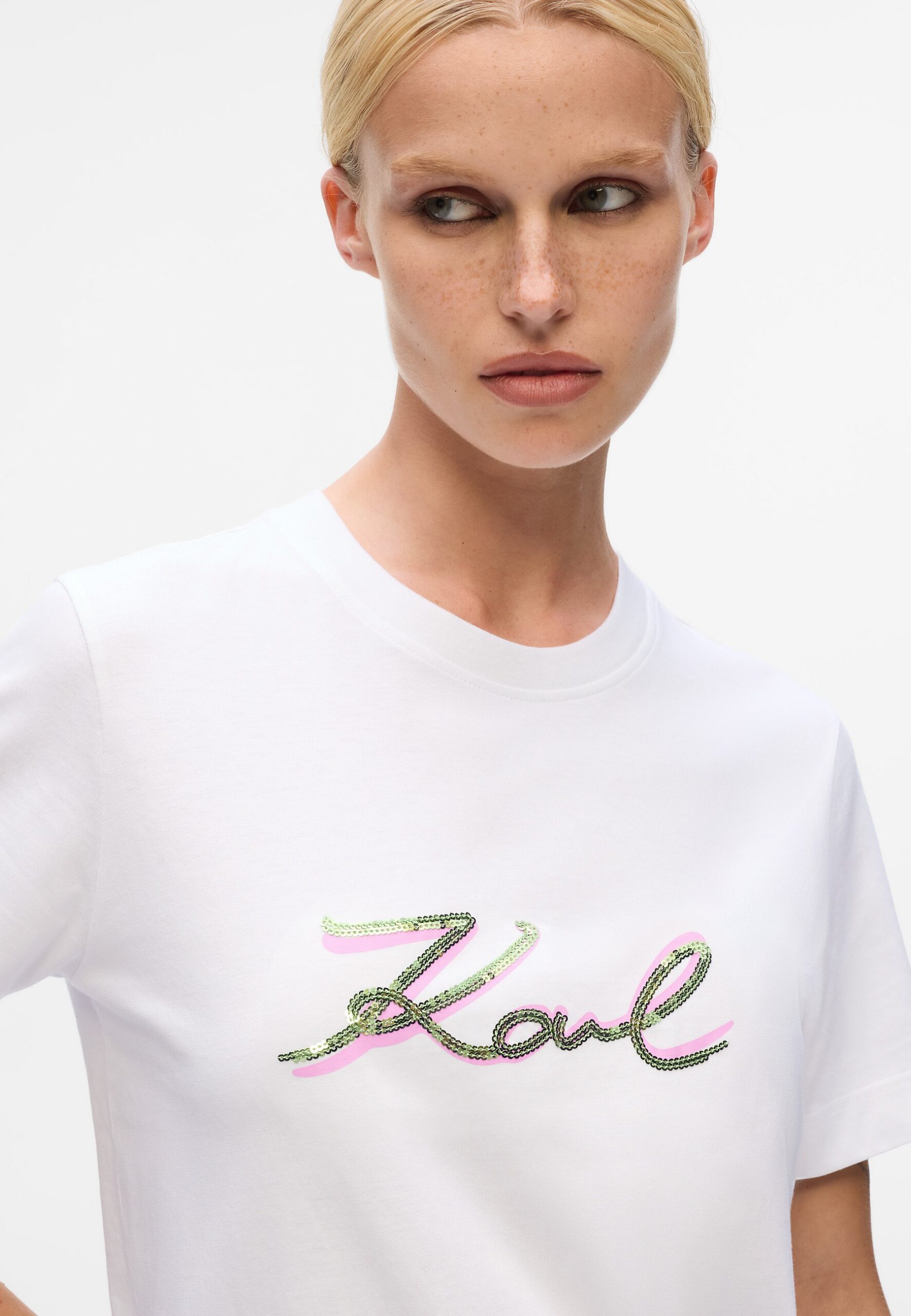 SIGNATURE SEQUINS – Print T-shirt – white