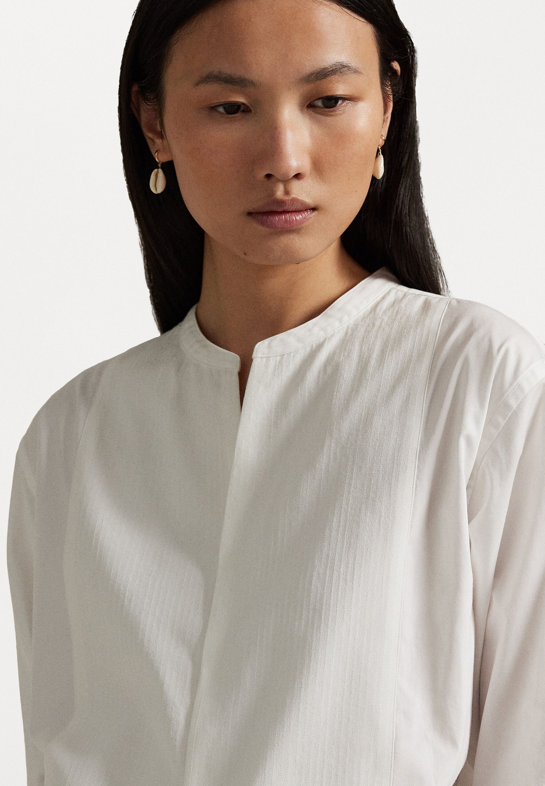SILK-BIB TUXEDO SHIRT – Button-down blouse – white