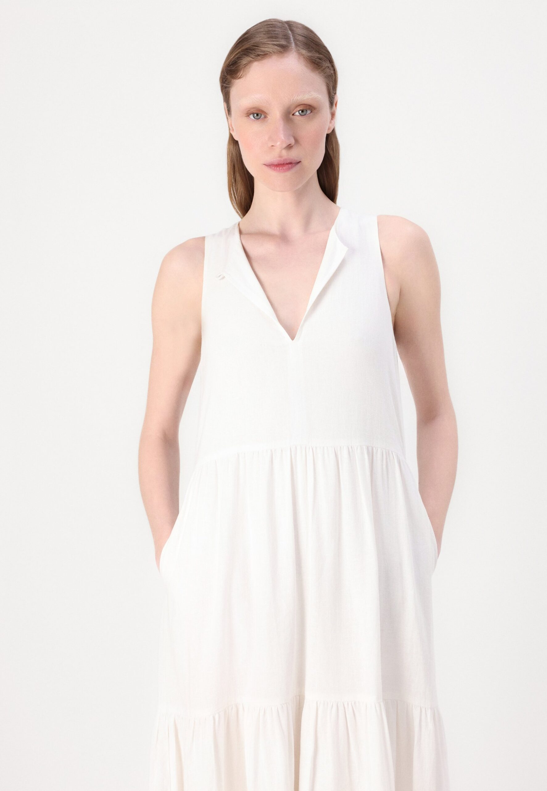 SLEEVELESS TIERED MAXI DRESS KEYHOLE NECKLINE – Day dress – ivory