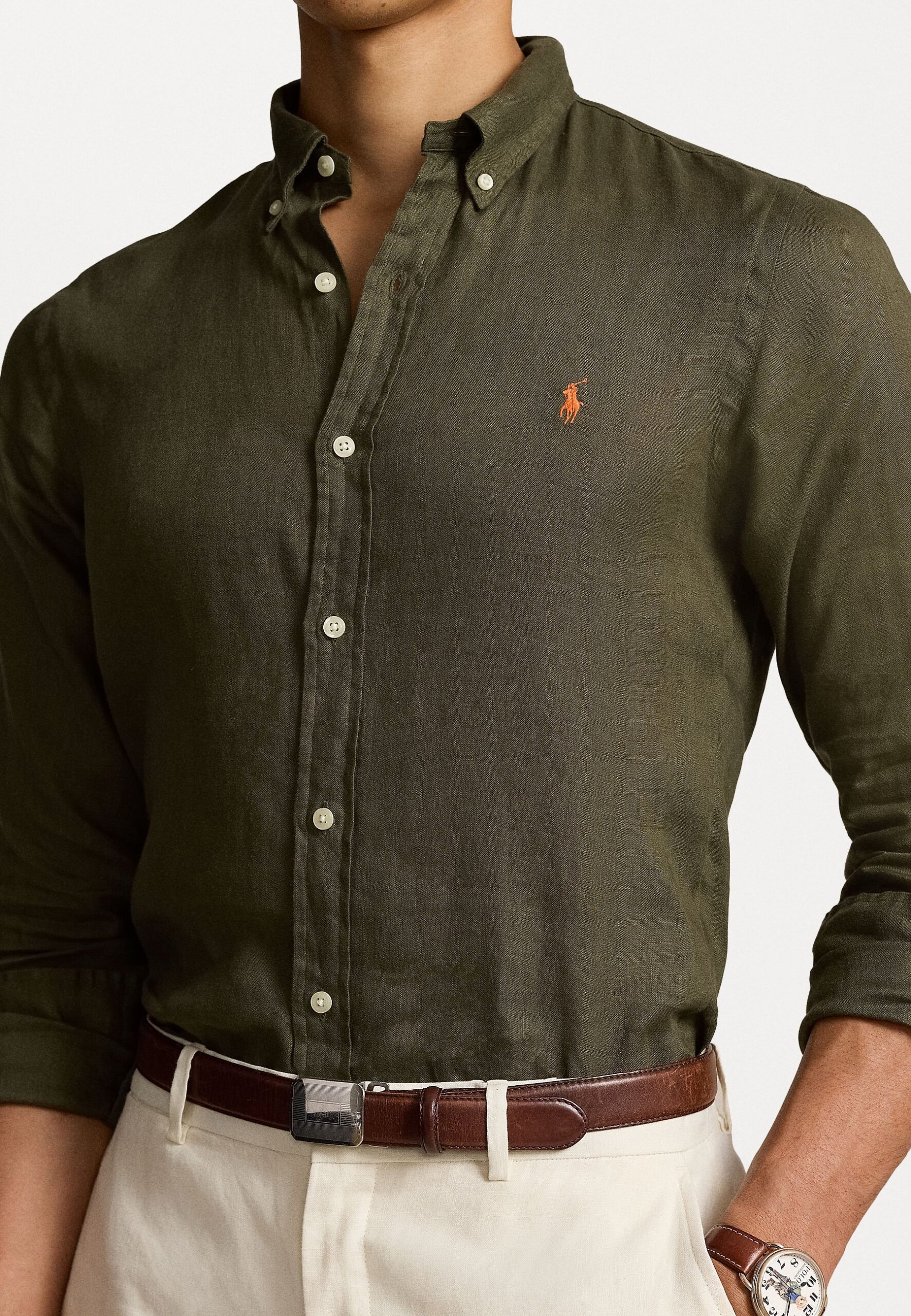 SLIM FIT LINEN SHIRT – Shirt – thermal green
