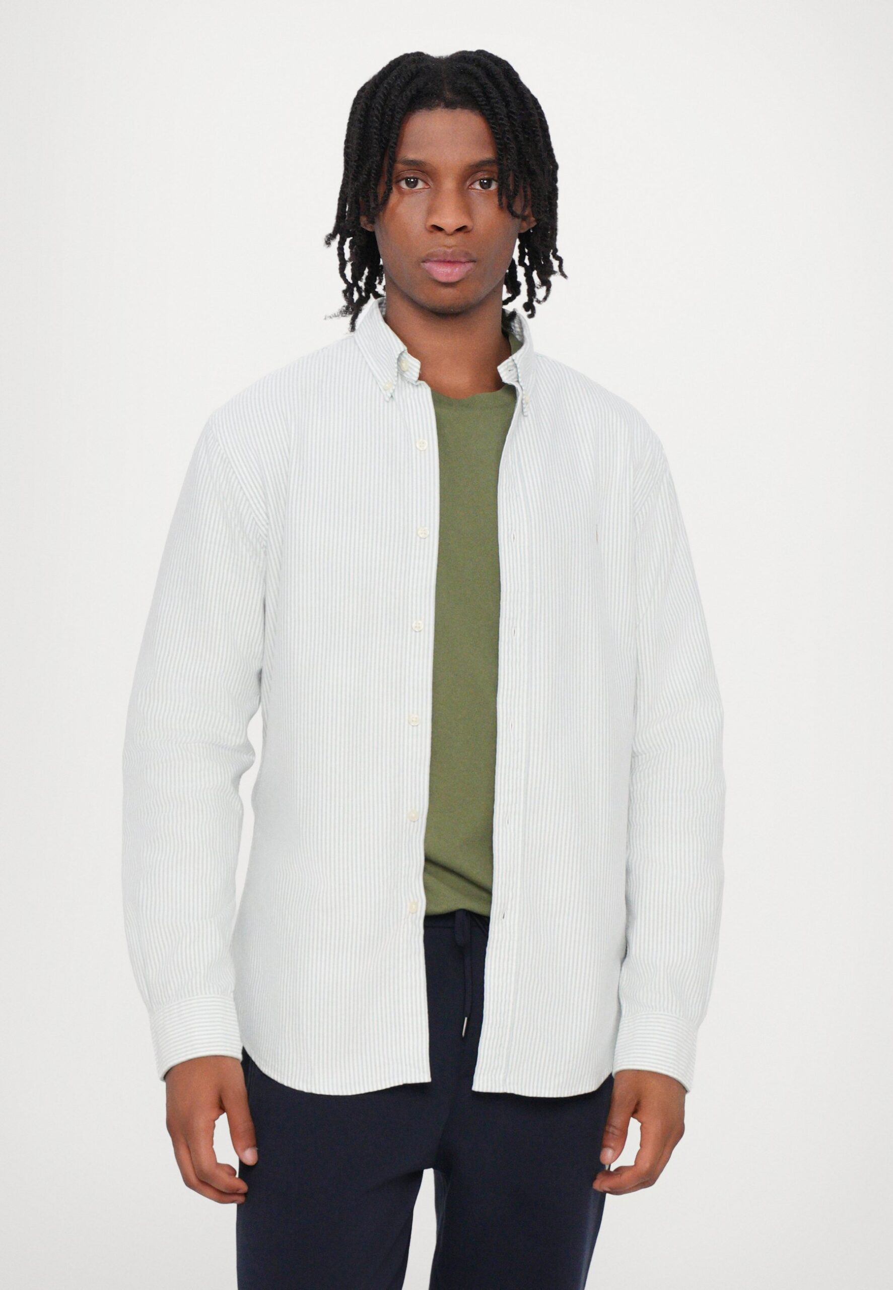 SLIM FIT STRIPED OXFORD SHIRT – Shirt – lovat/white