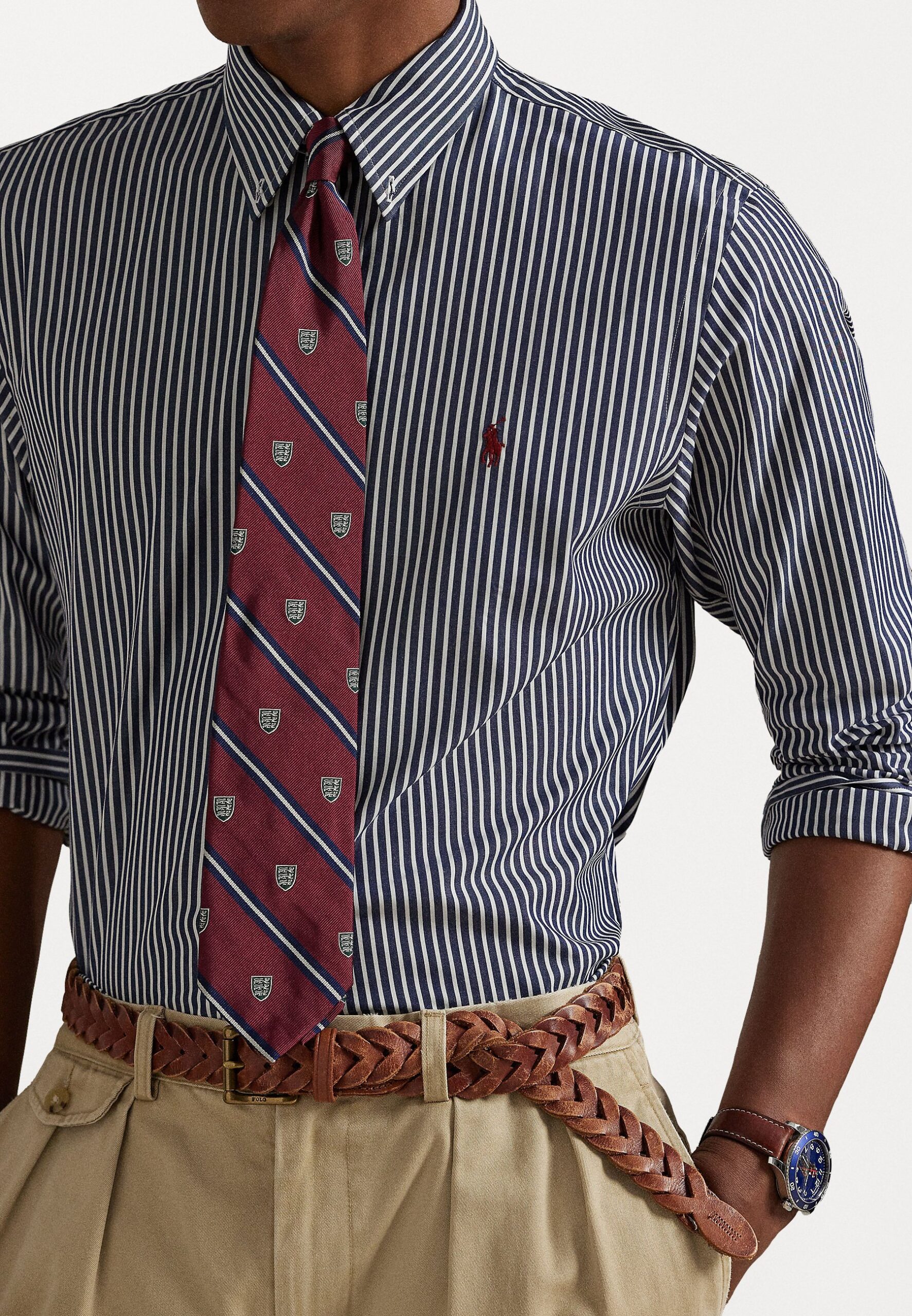 SLIM FIT STRIPED STRETCH POPLIN SHIRT – Shirt – newport navy/white