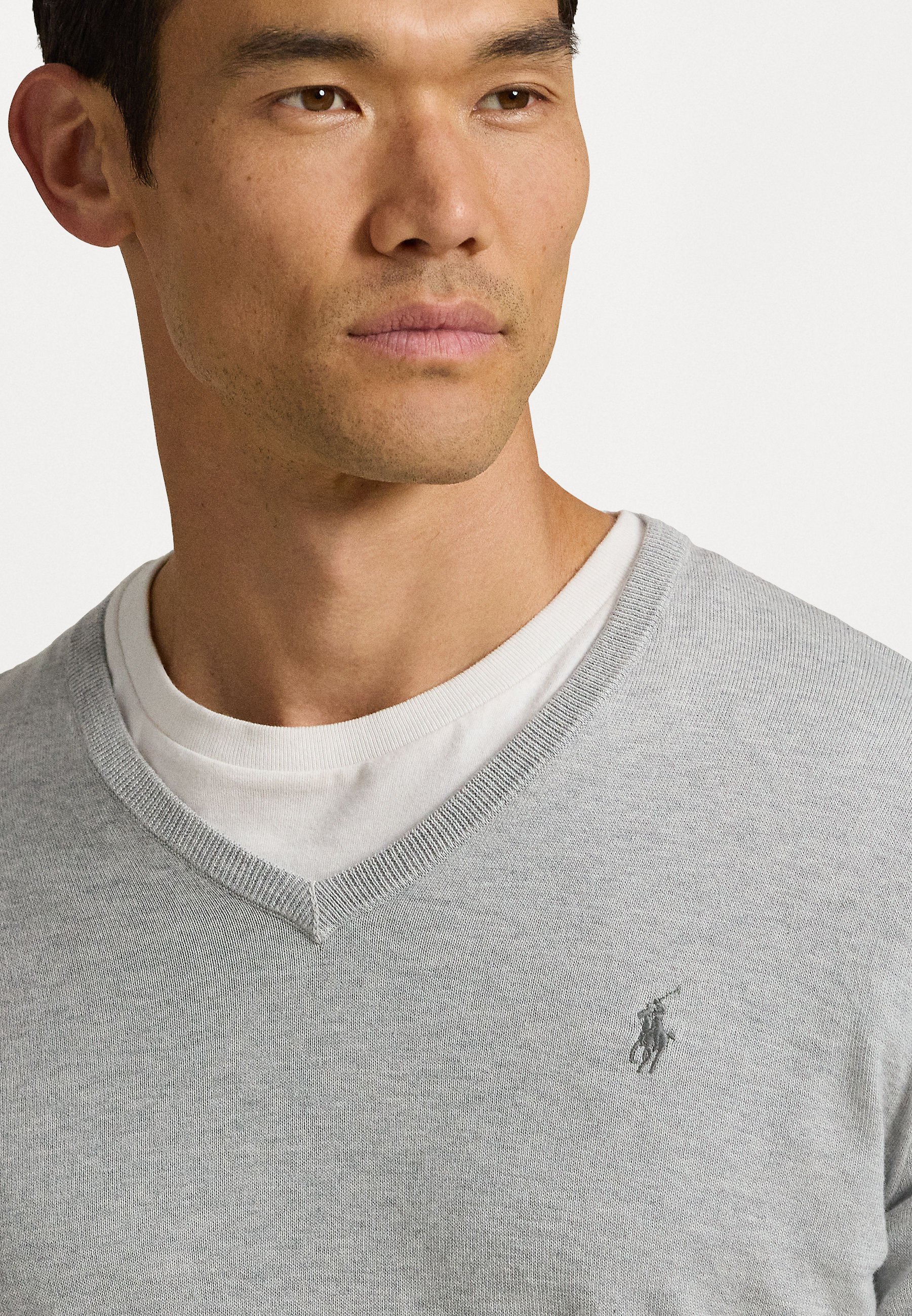 SLIM FIT V NECK – Jumper – light grey heather