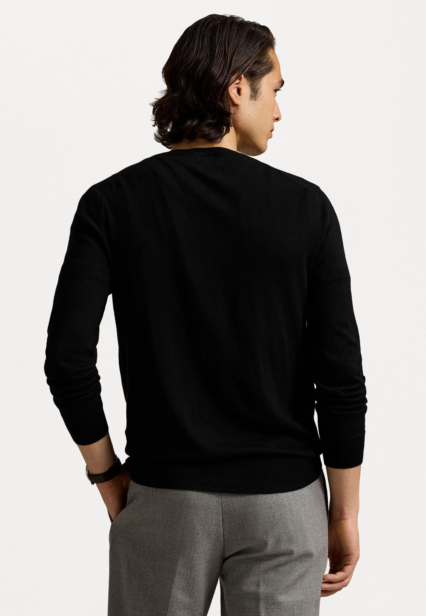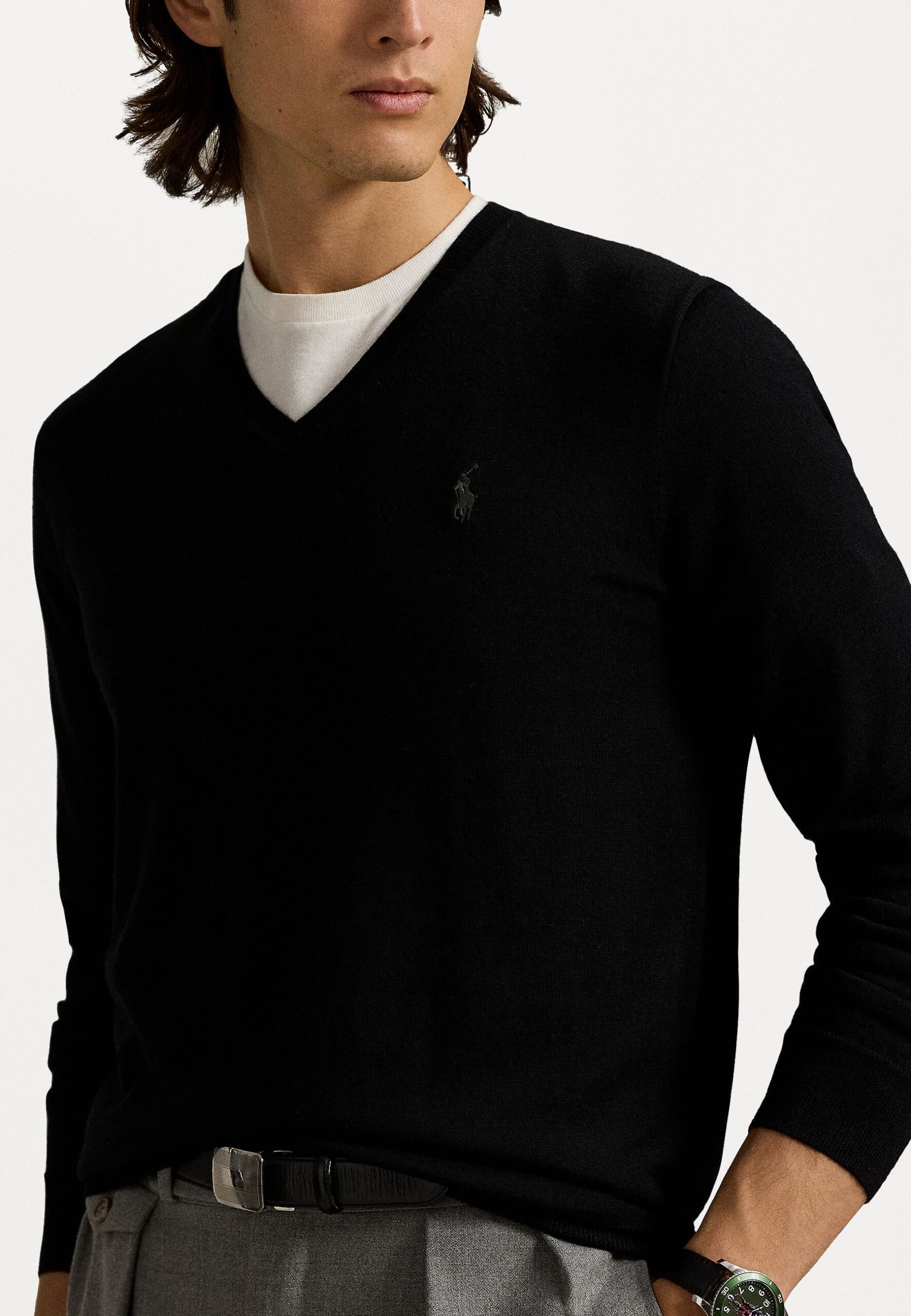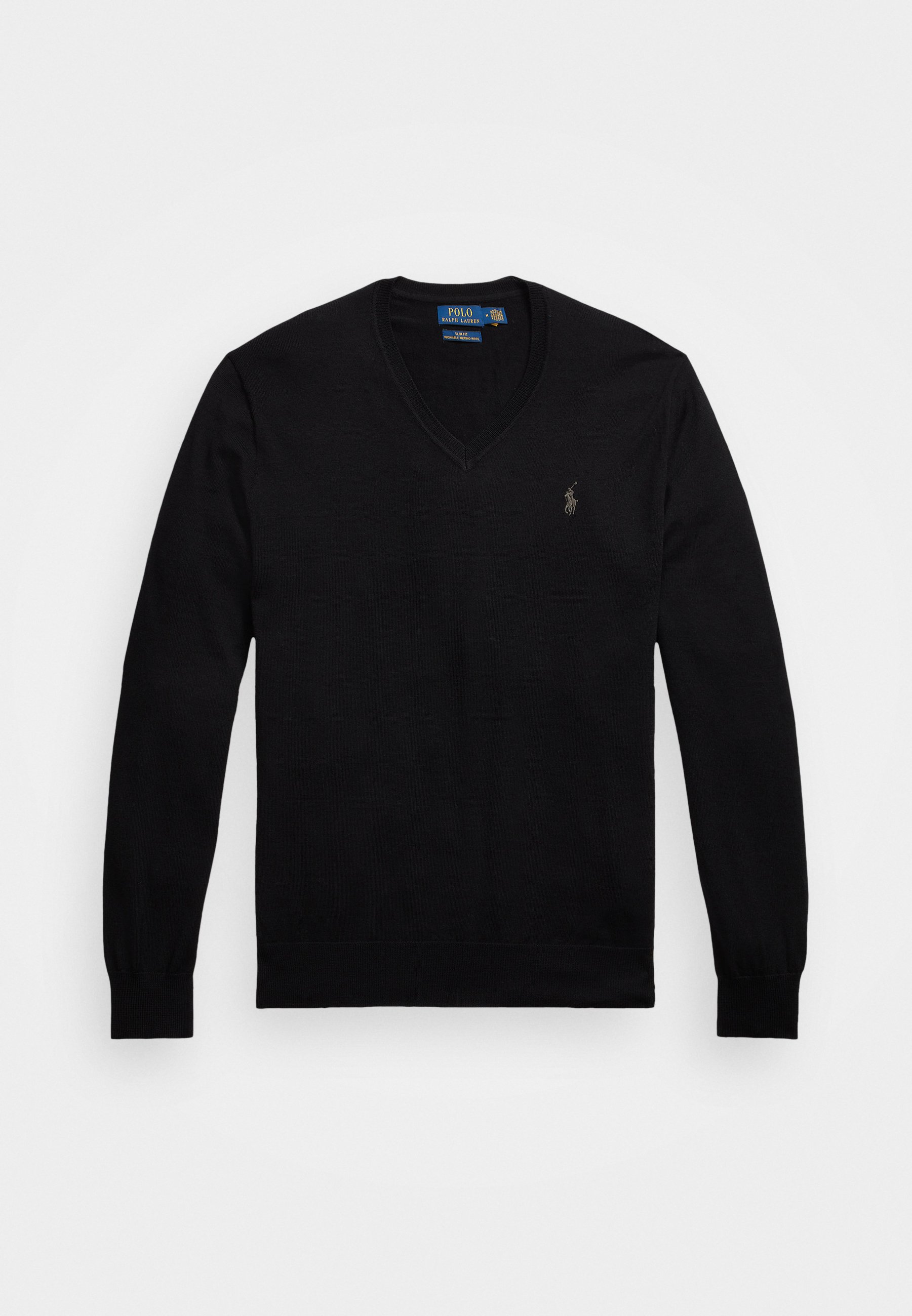 SLIM FIT WASHABLE WOOL V-NECK JUMPER – Jumper – black