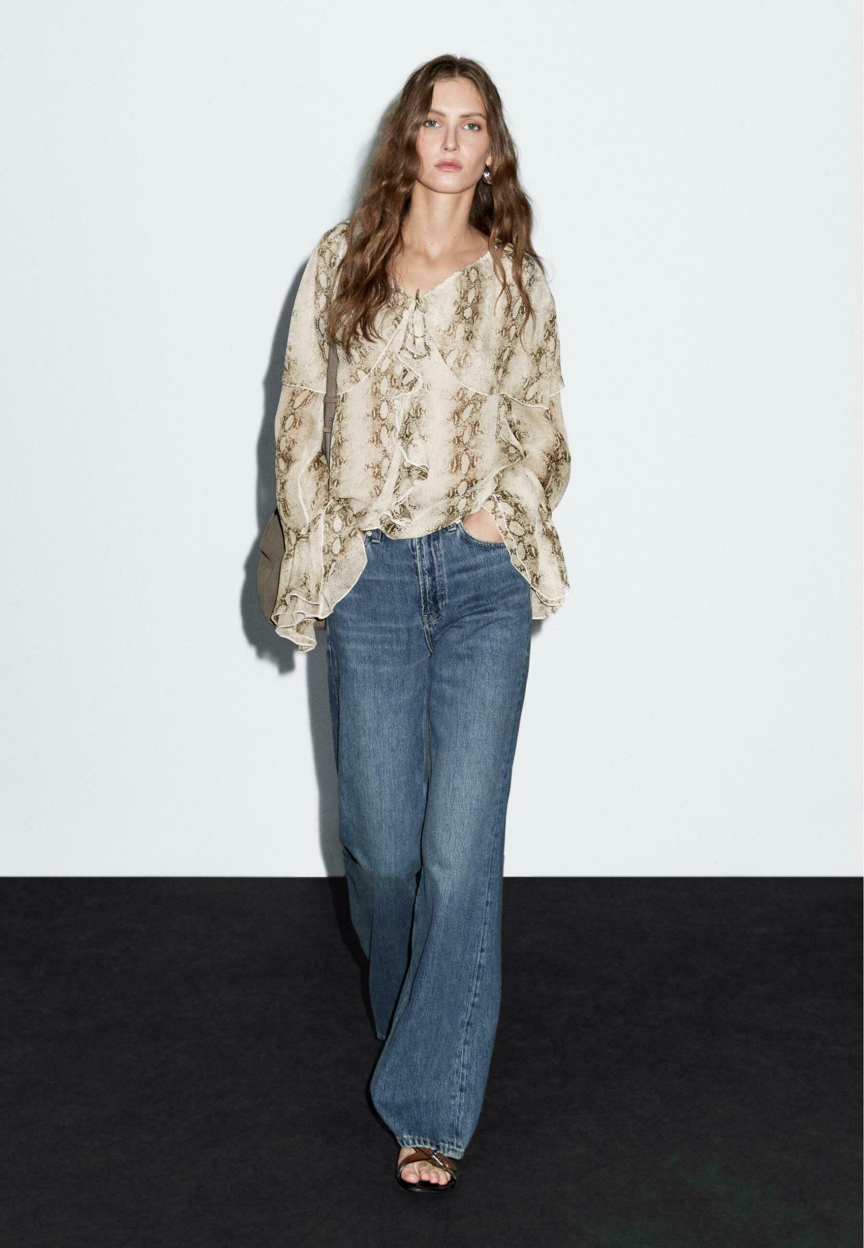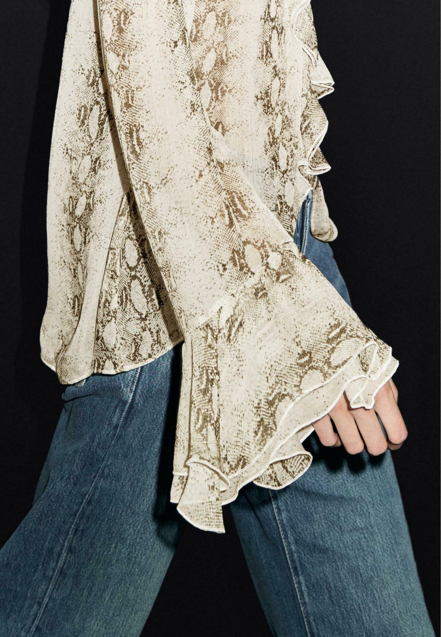 SNAKESKIN PRINT GARMENT WITH RUFFLES – Blouse – beige