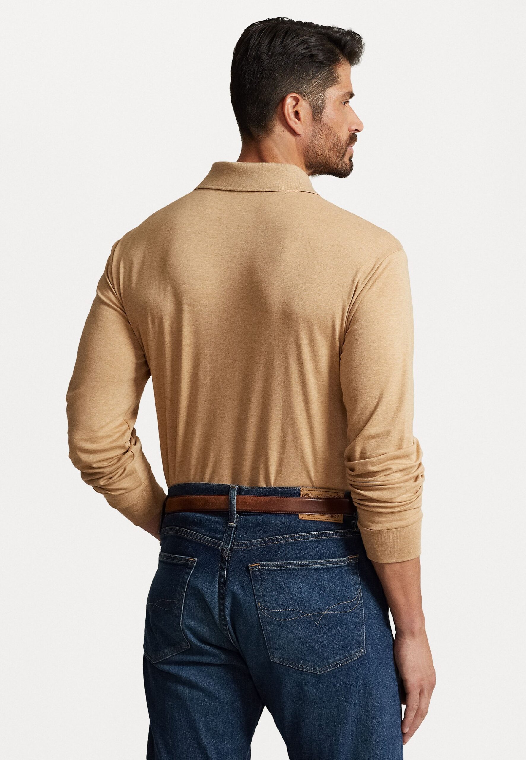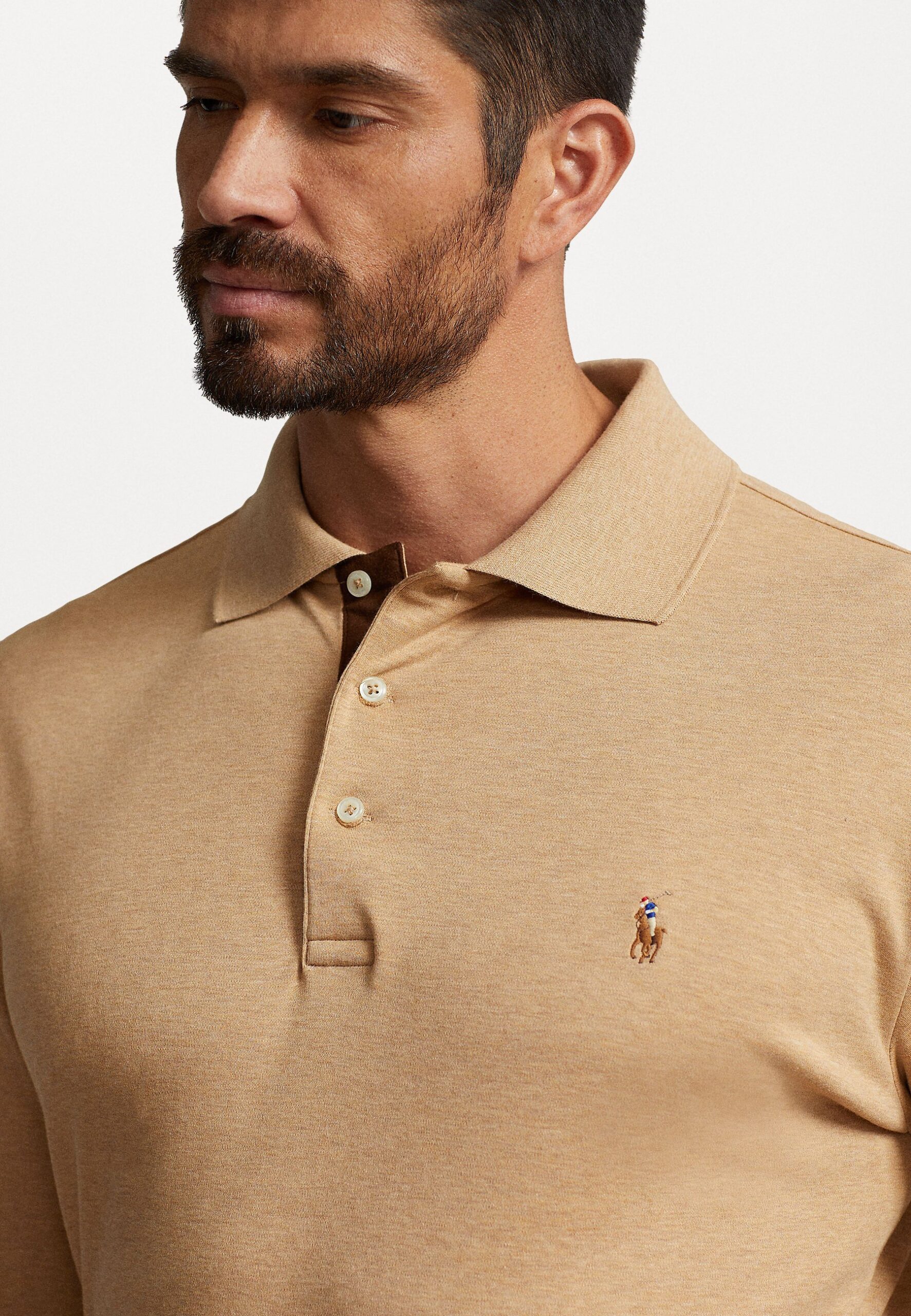 SOFT COTTON LONG-SLEEVE POLO SHIRT – Polo shirt – classic camel heather