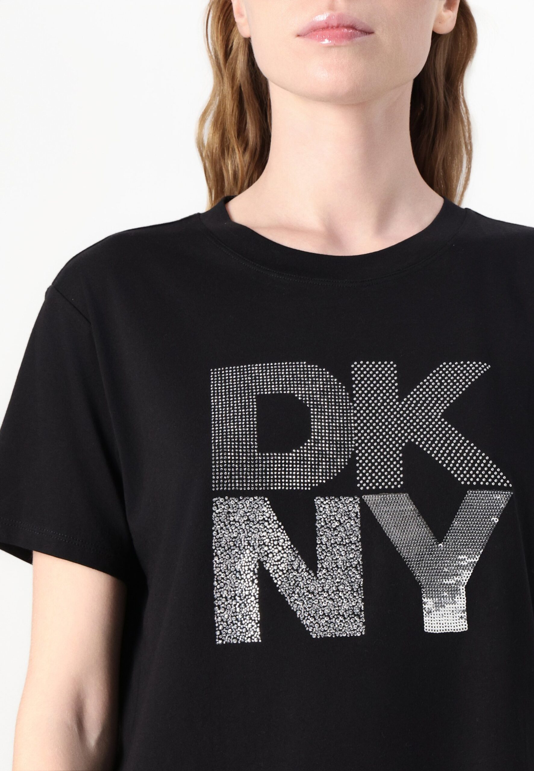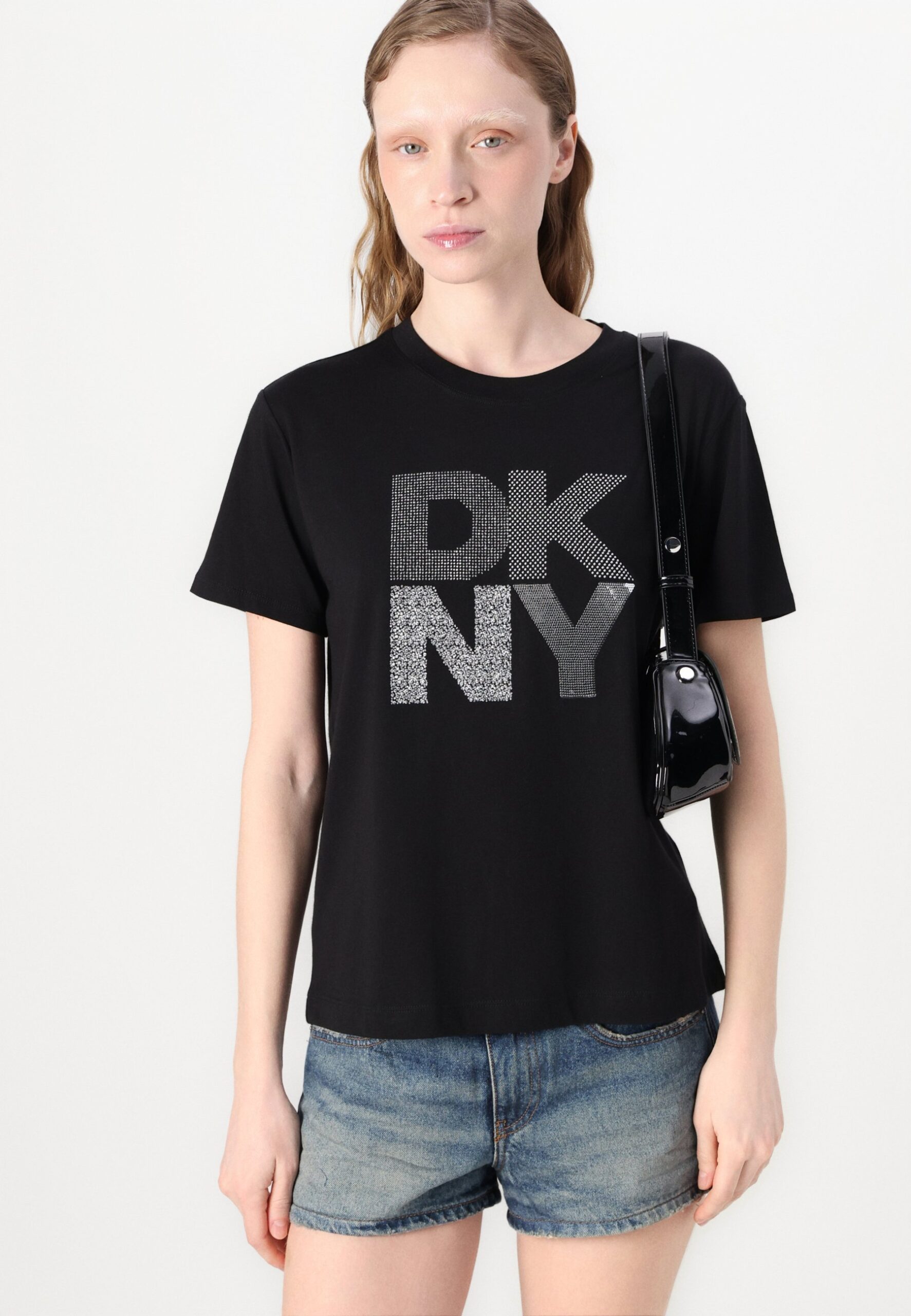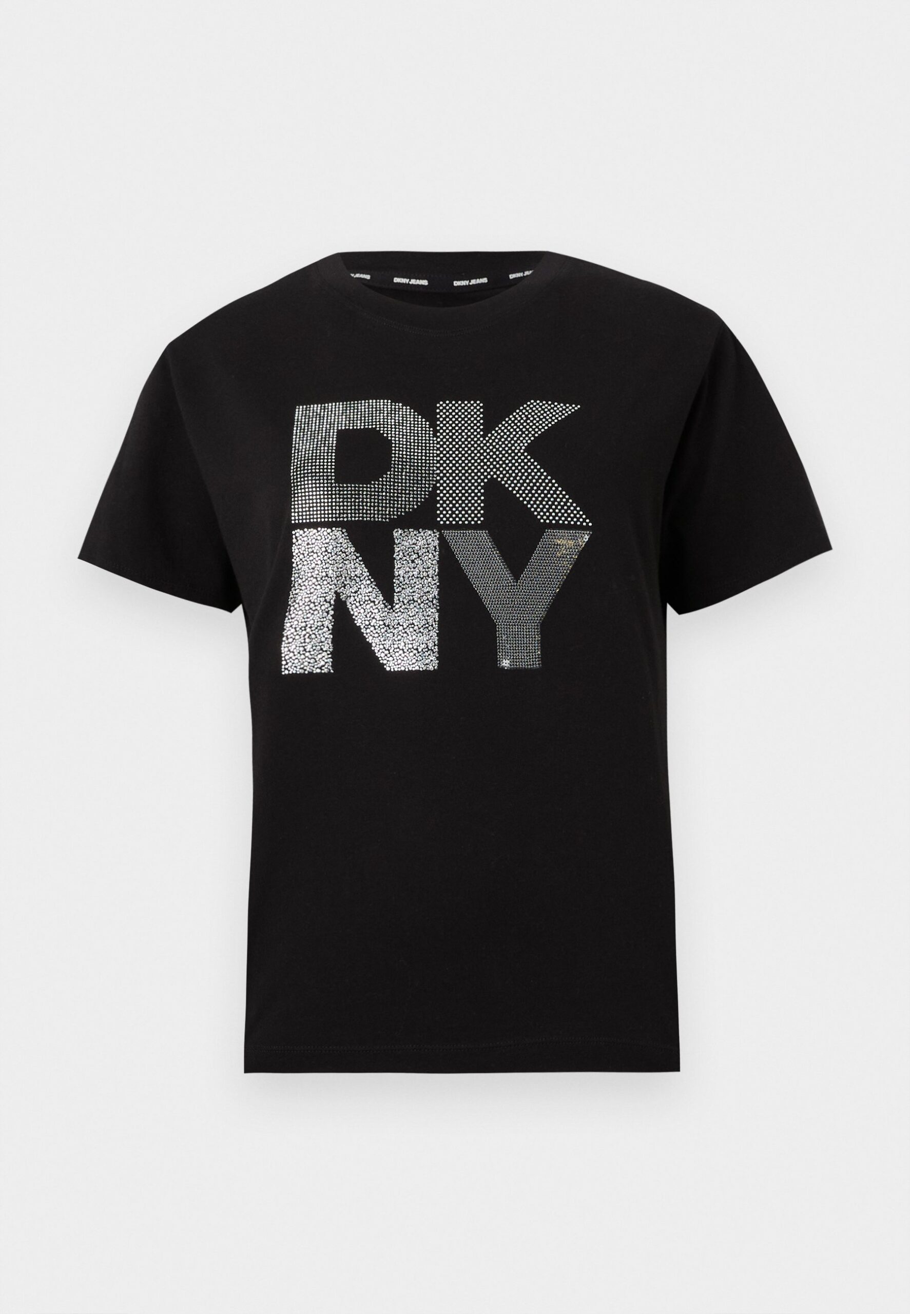 STACKED NEW YORK MIXED EMBELLISHMENT LOGO RELAXED CREW NECK TEE – Print T-shirt – black/silver