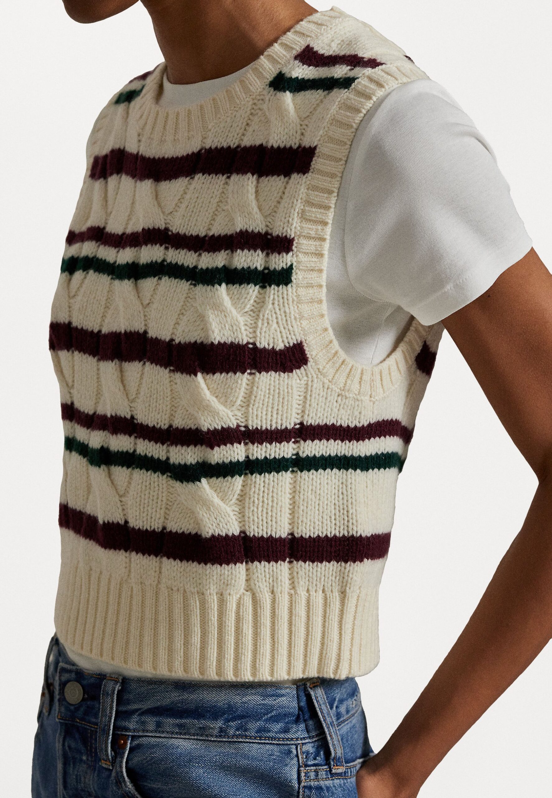 STRCABLE CROPPED SWEATER VEST – Waistcoat – authentic cream multi