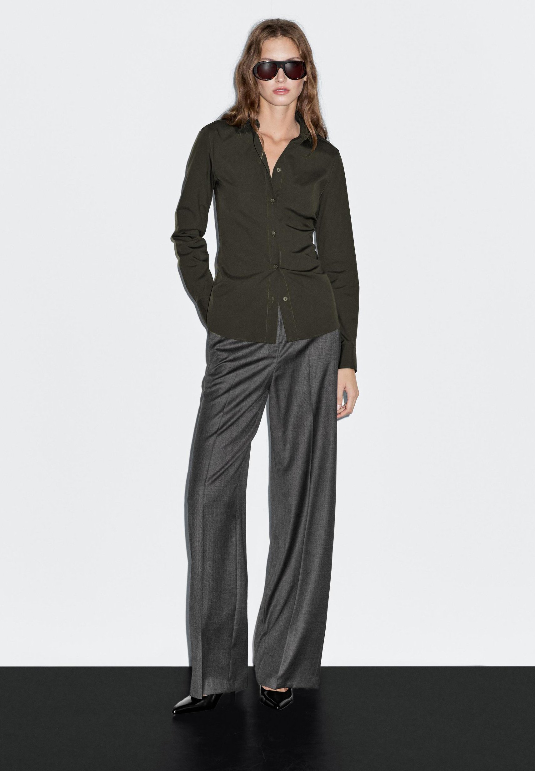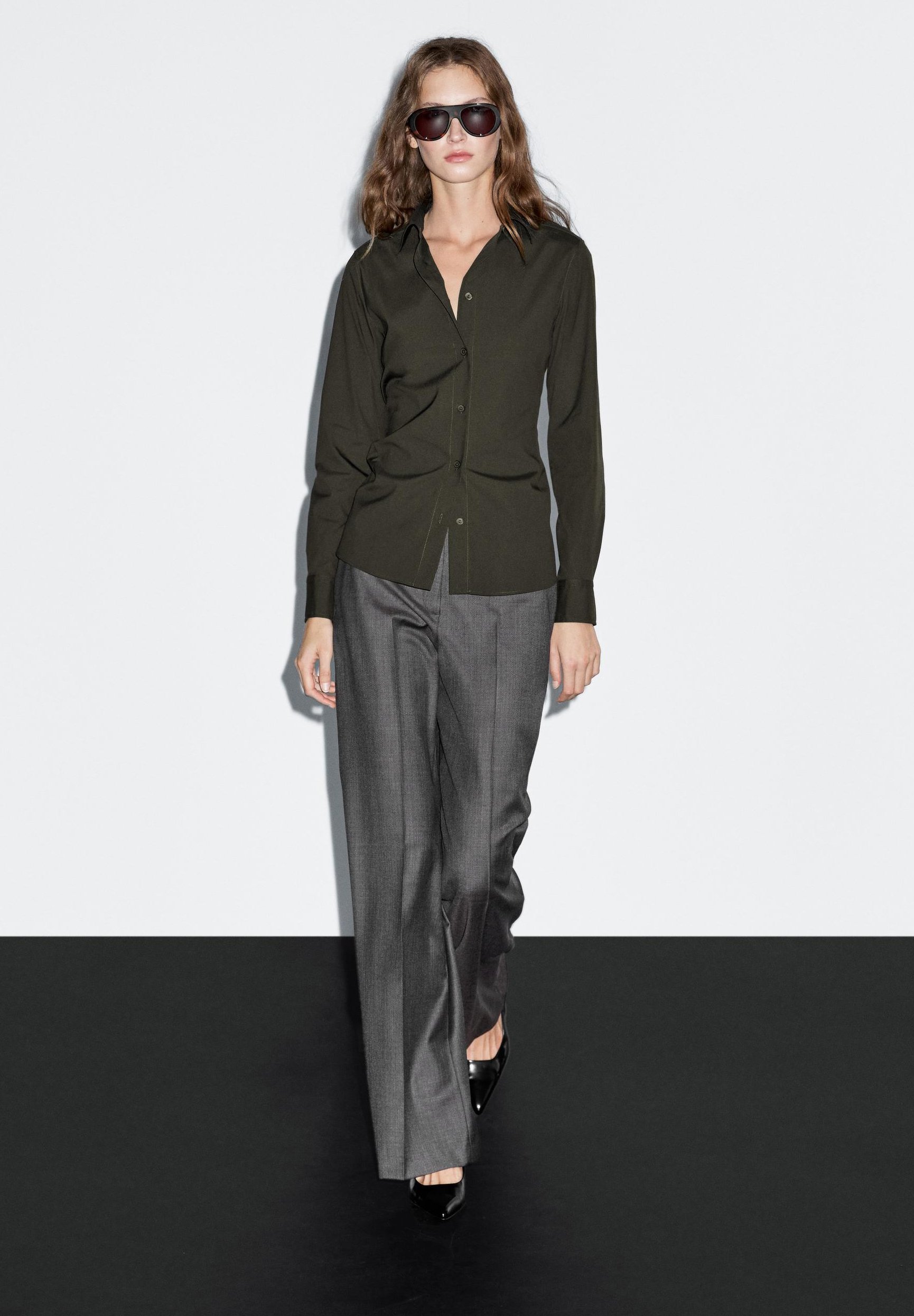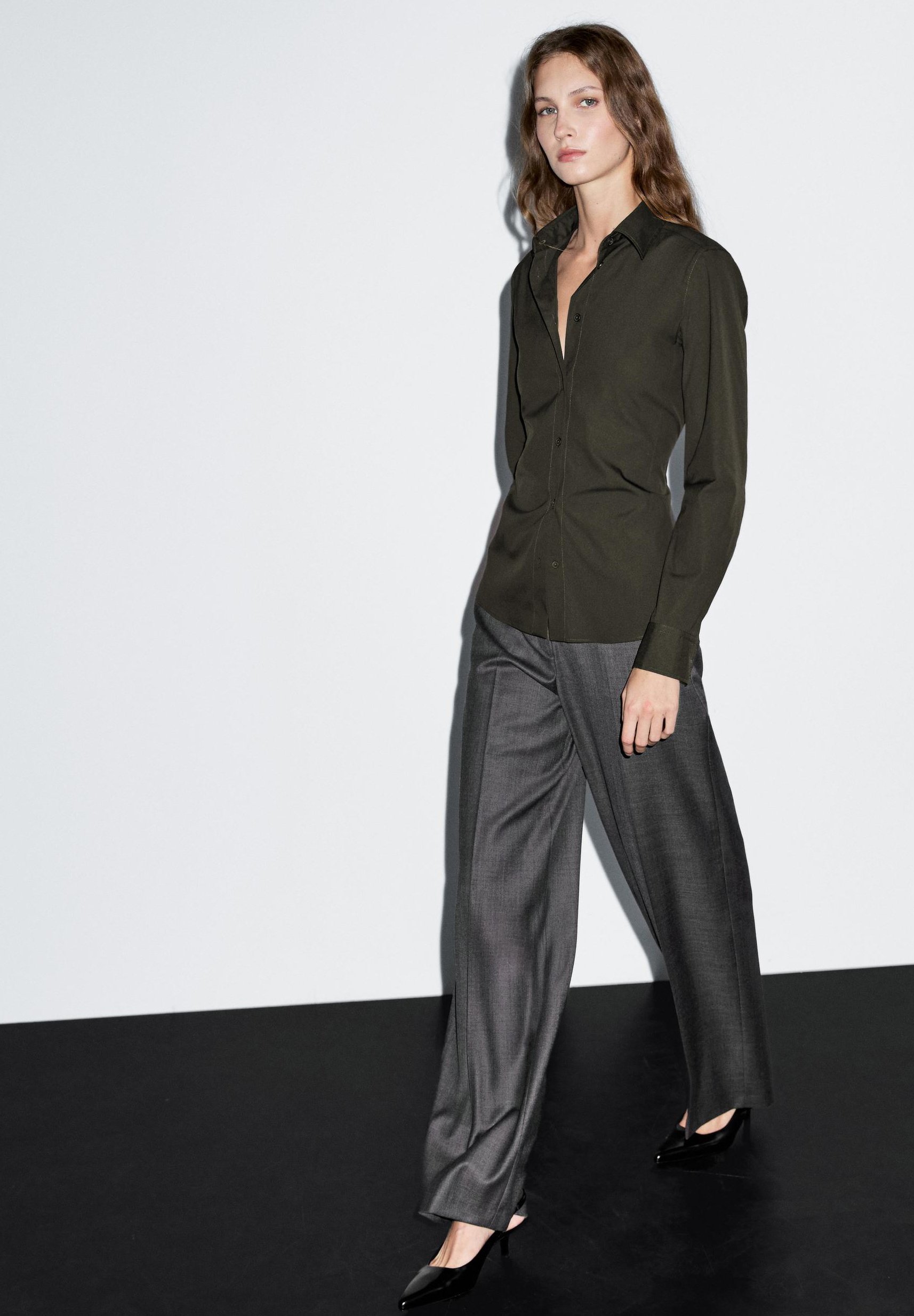 STRETCH – Button-down blouse – dark green