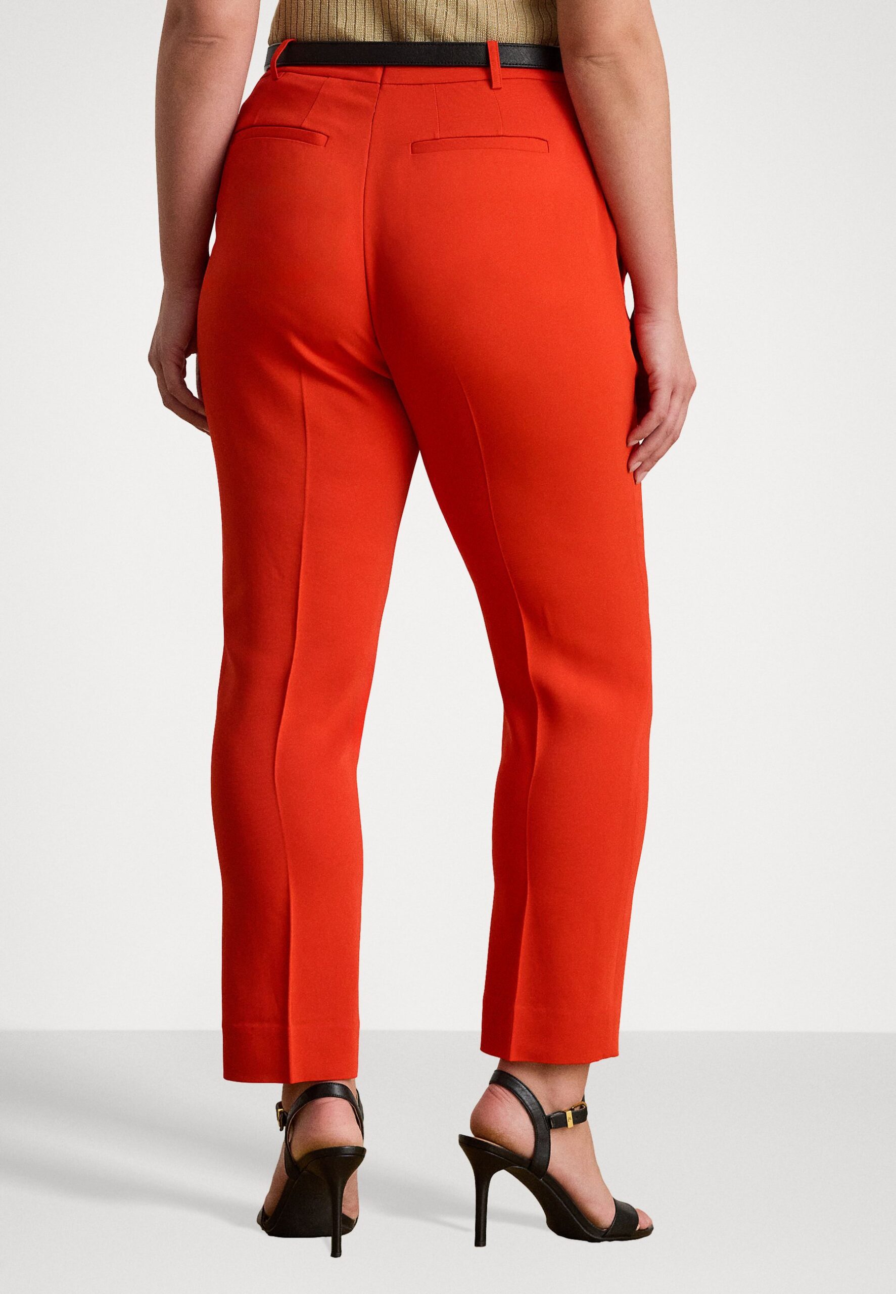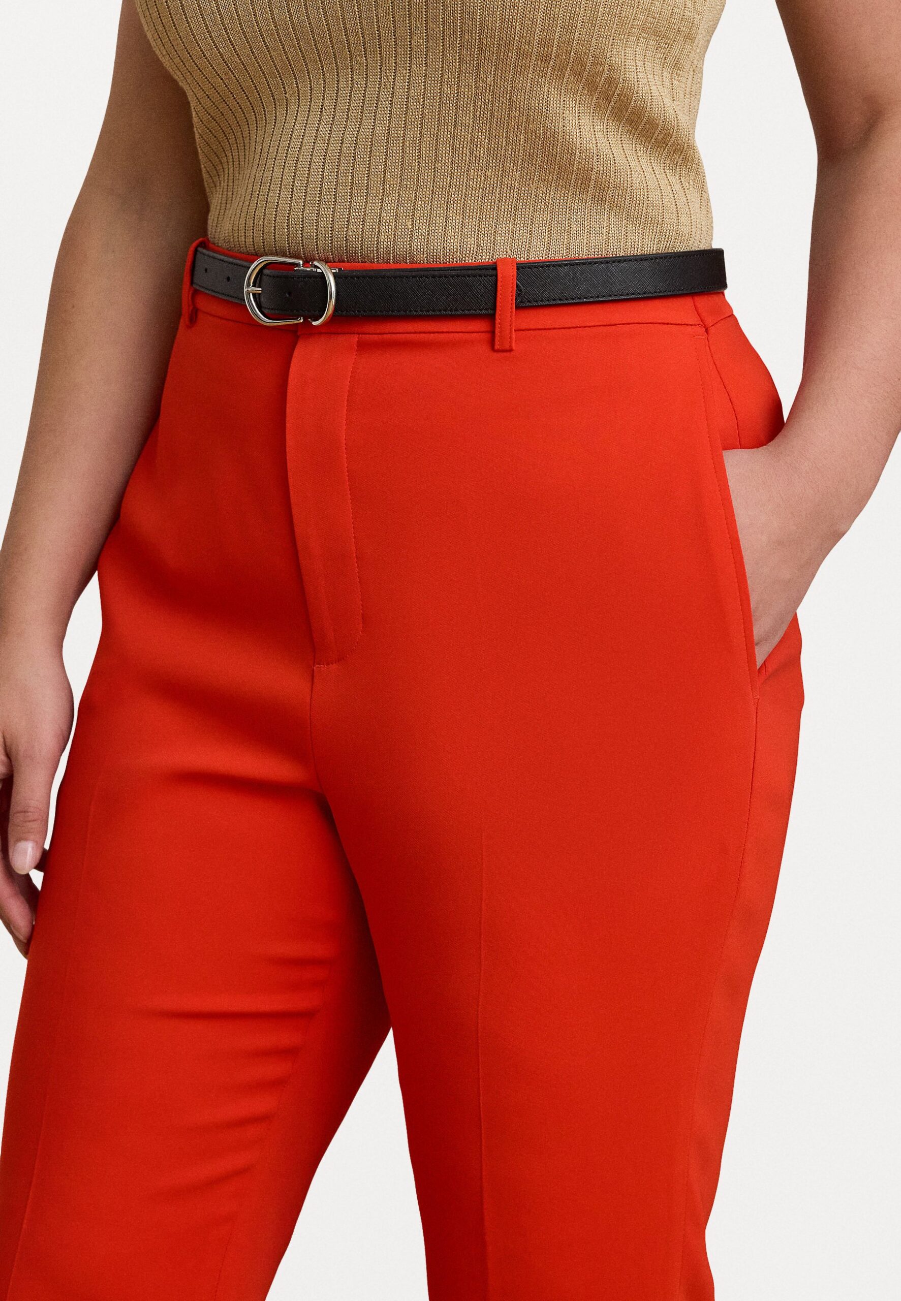 STRETCH CADY CROPPED PANT – Trousers – bright vermilion