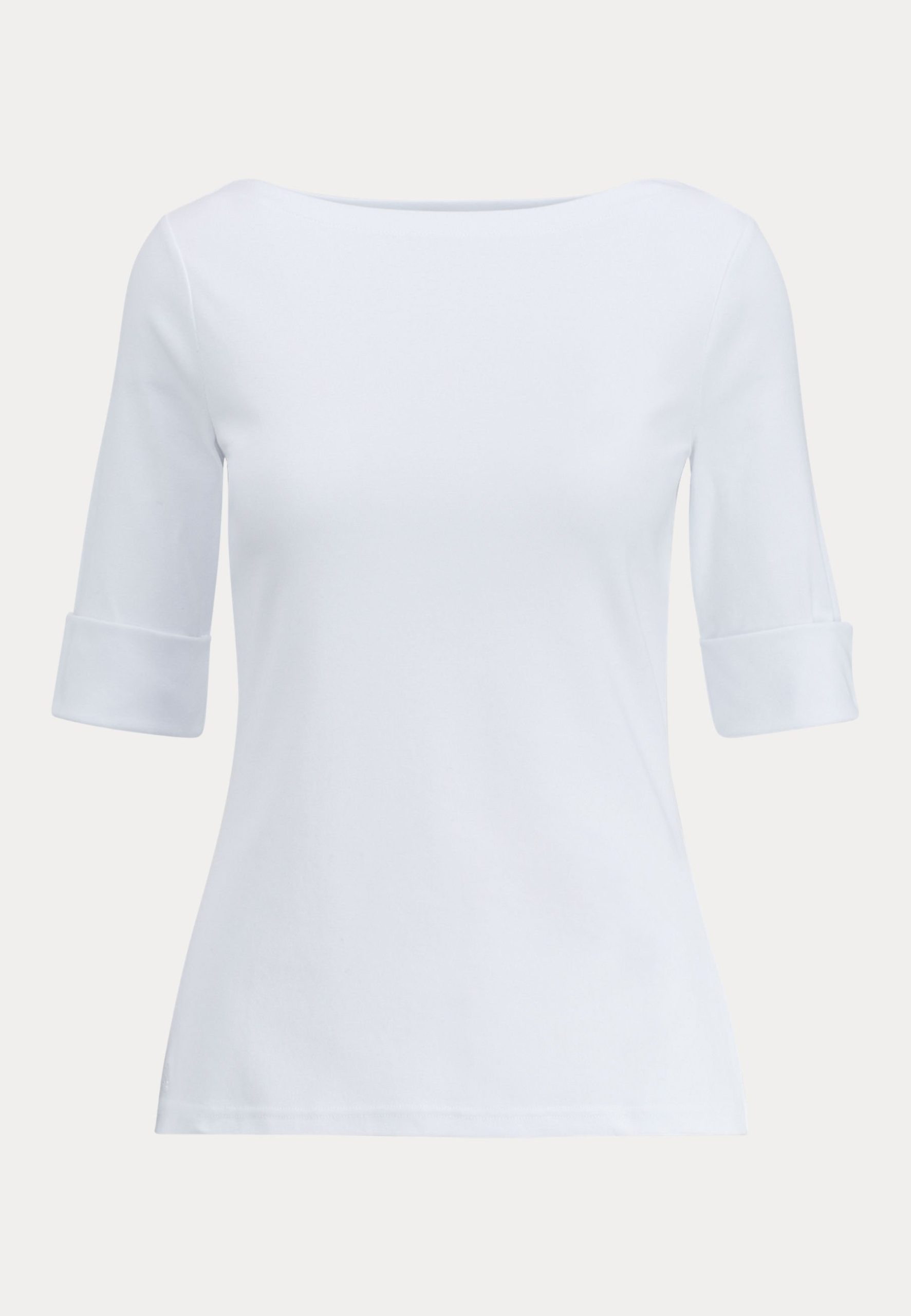 STRETCH COTTON BOATNECK TEE – Basic T-shirt – white