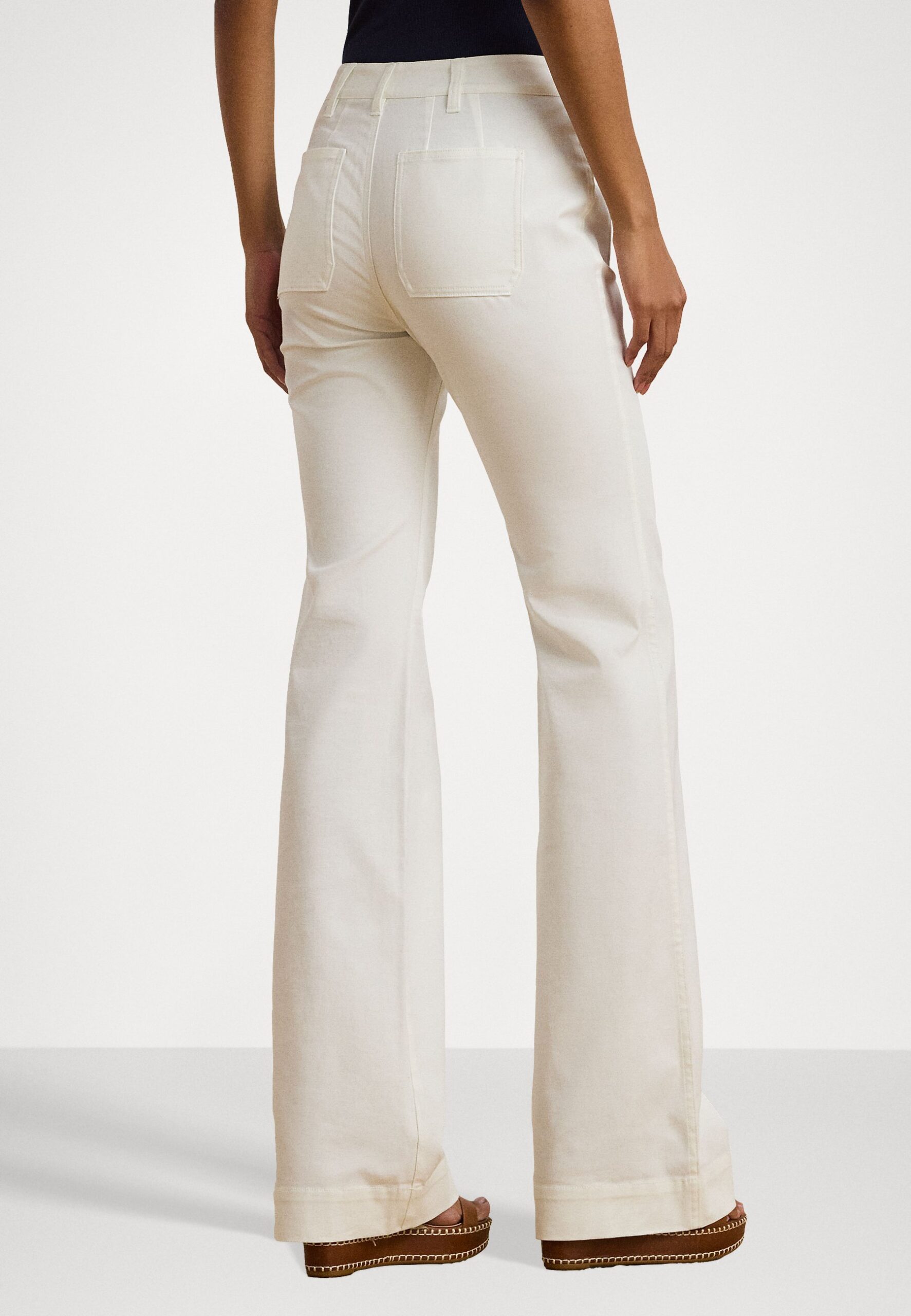 STRETCH COTTON CANVAS WIDE LEG PANT – Trousers – white