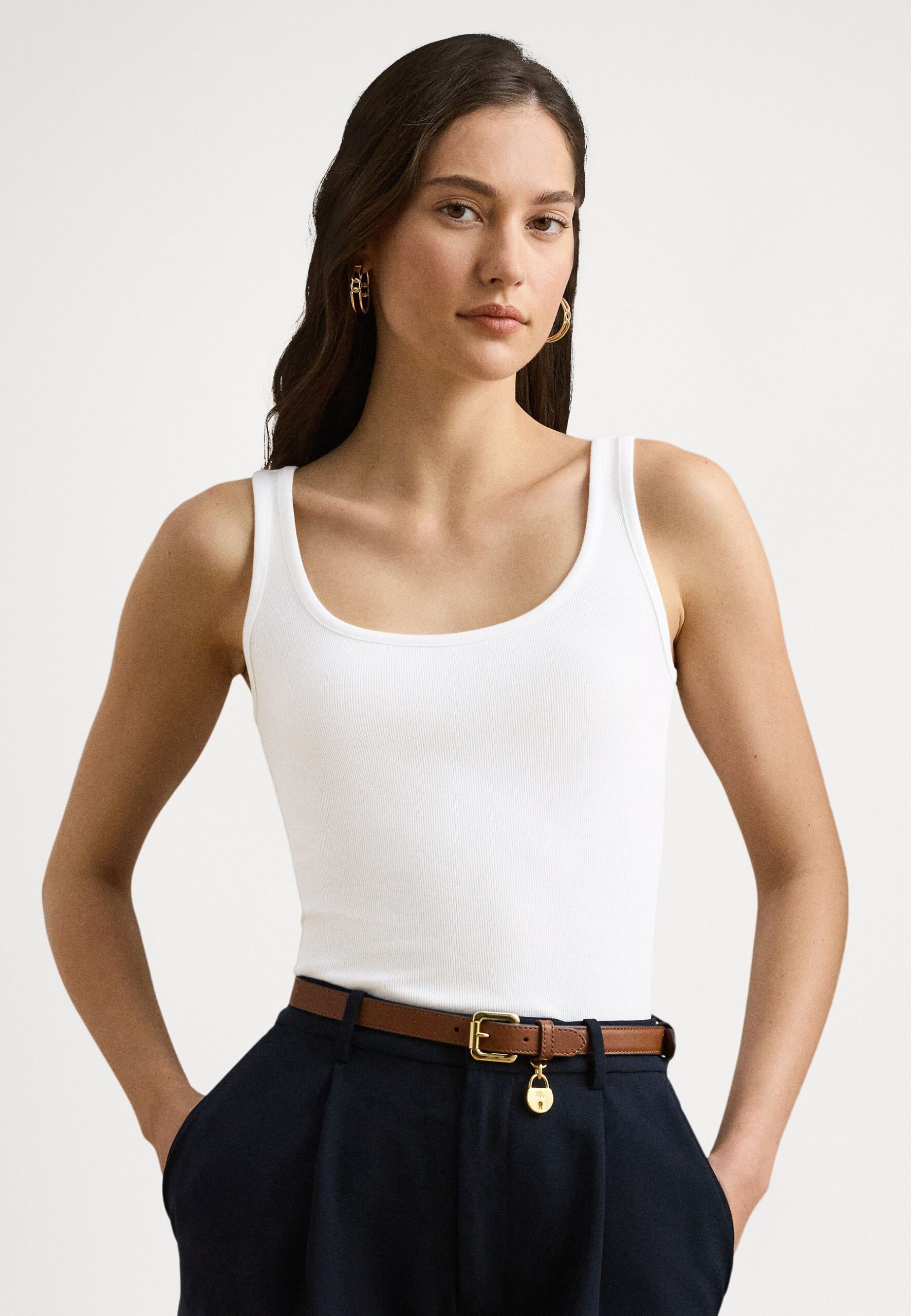 STRETCH COTTON TANK TOP – Top – white