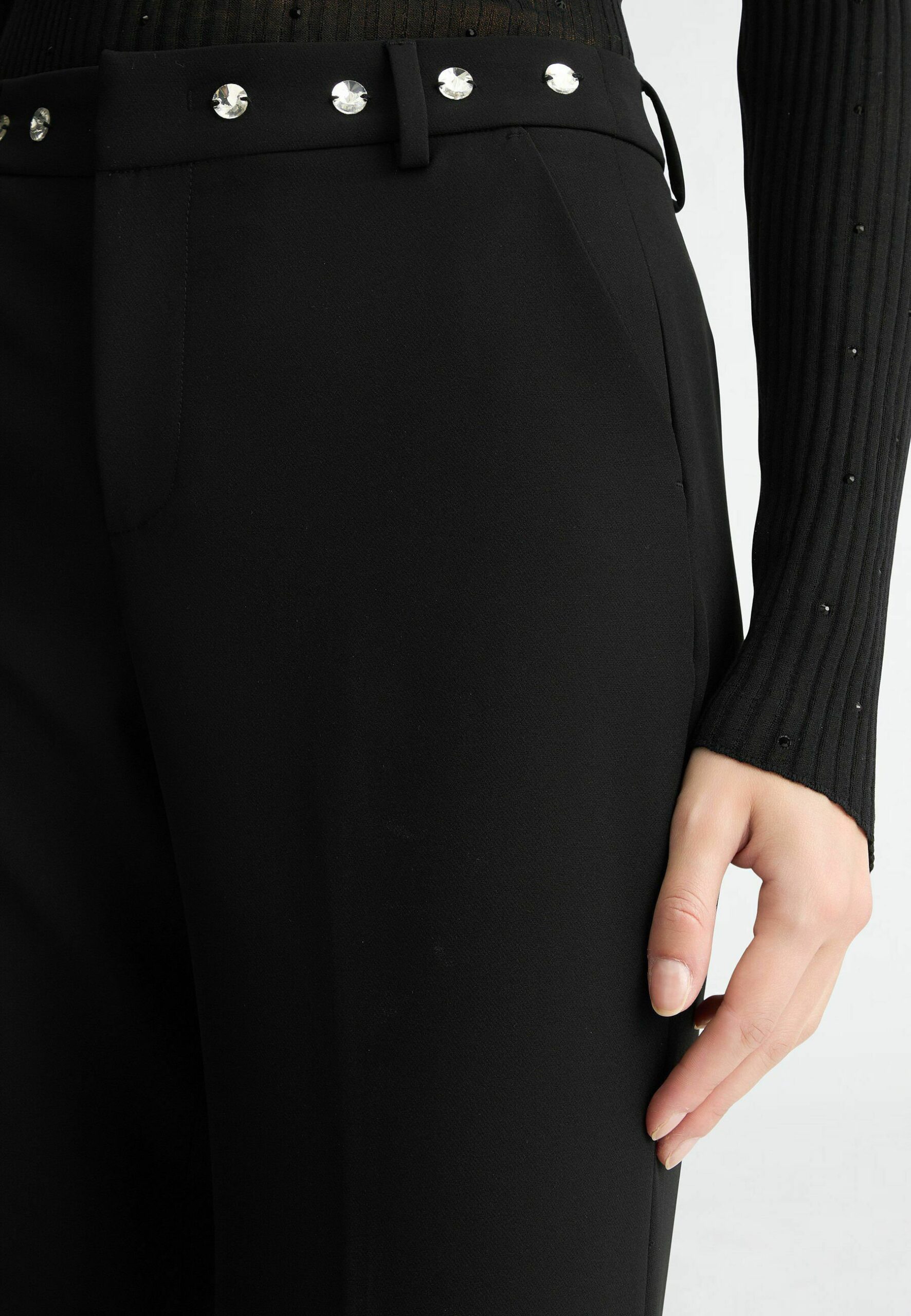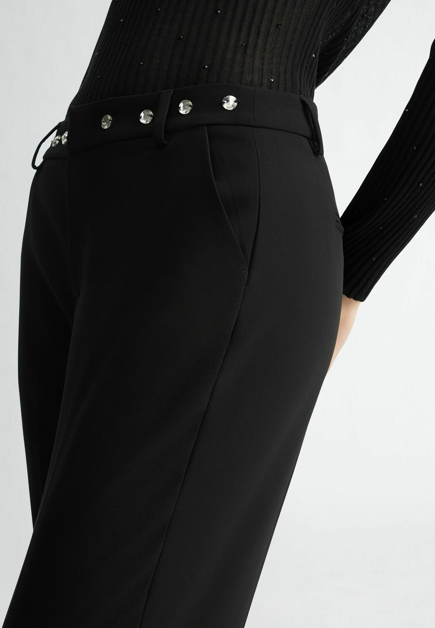 STRETCH WITH RHINESTONES – Trousers – black